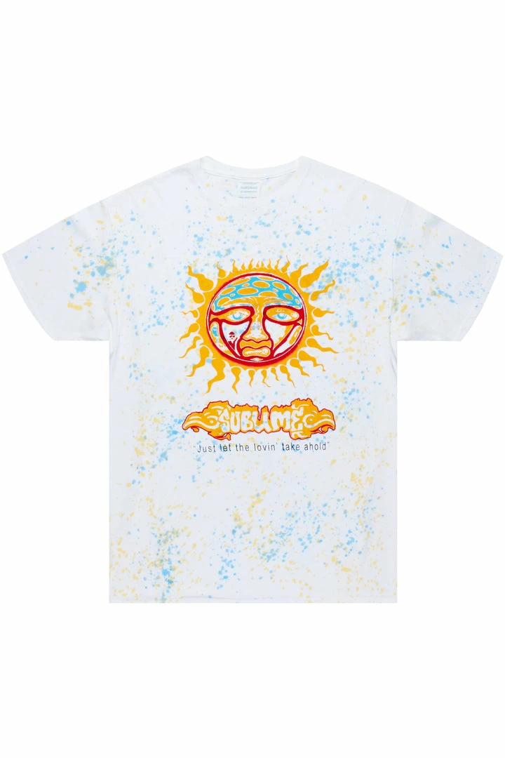Rockstar Original Men’s tee in white. Featuring a multi color printed Sublime logo with custom splatter paint designing throughout. Accenting a relaxed fit with a crew neckline and premium cotton threading for maximum comfort and style.