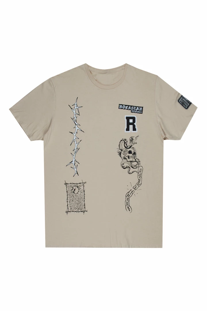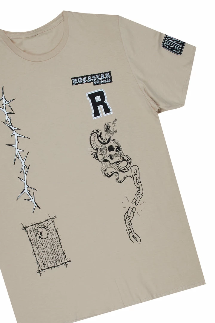 ๏ปฟRockstar Original Men’s tee inย beige. Featuring a printed RSO logo with a multi color graphic to match. This unique tee accents a crewneck line, lightweight wear and premium cotton threading for style and comfort.ย