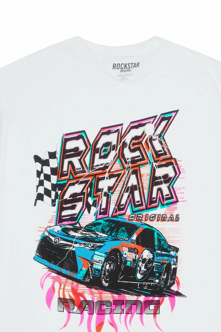 Rockstar Original Men’s tee in white. Featuring a printed RSO logo with multi color graphics to match. This unique tee accents a crewneck line, a relaxed fit and premium cotton threading for style and comfort.