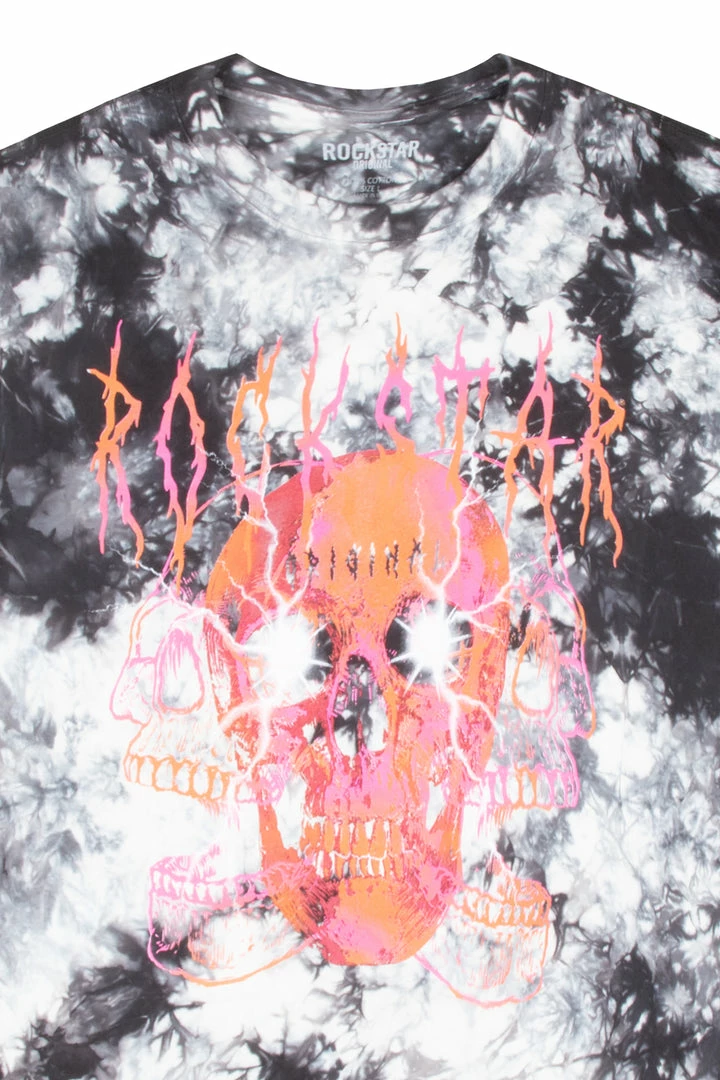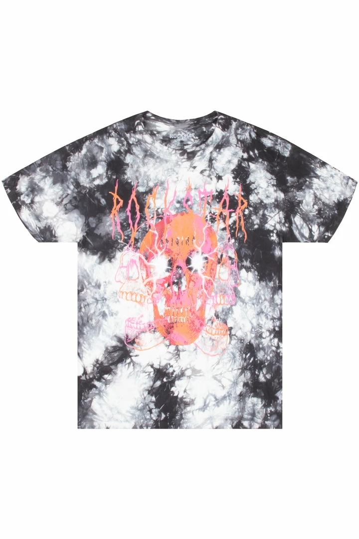 Rockstar Original Men’s tee in tie-dye black. Featuring a RSO logo with a multi color skull graphic to match. Accenting a relaxed fit with a crew neckline and premium cotton threading for maximum comfort and style.