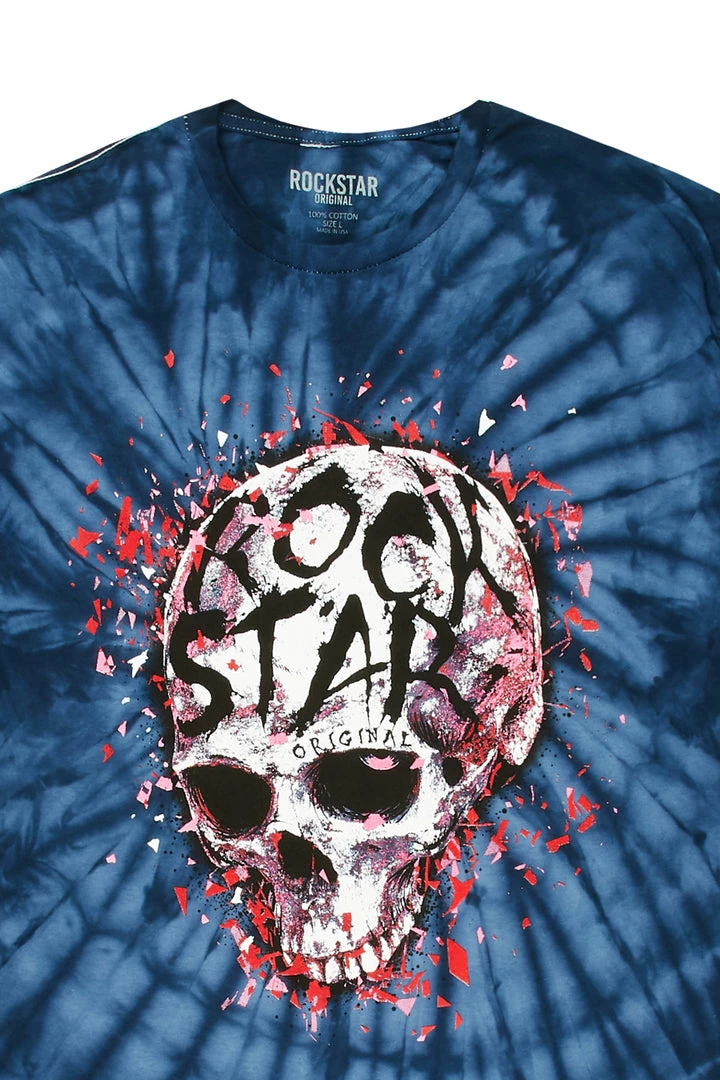Rockstar Original Men’s tee inย tie-dyeย blue. Featuring aย RSOย logo with aย skull graphic to match. Accenting a relaxed fit with a crew necklineย and premium cotton threading for maximum comfort and style.ย