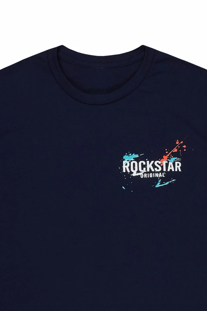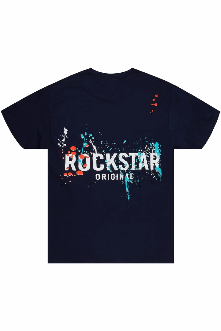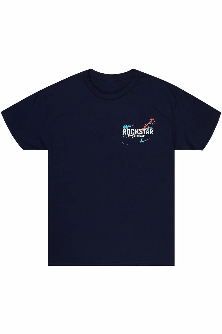Rockstar Original Men’s tee in navy. Featuring a printed RSO logo on the front and back with customer paint splatter designing. Accenting a crewΒ neckline andΒ premium cotton threading for a lightweight wear.