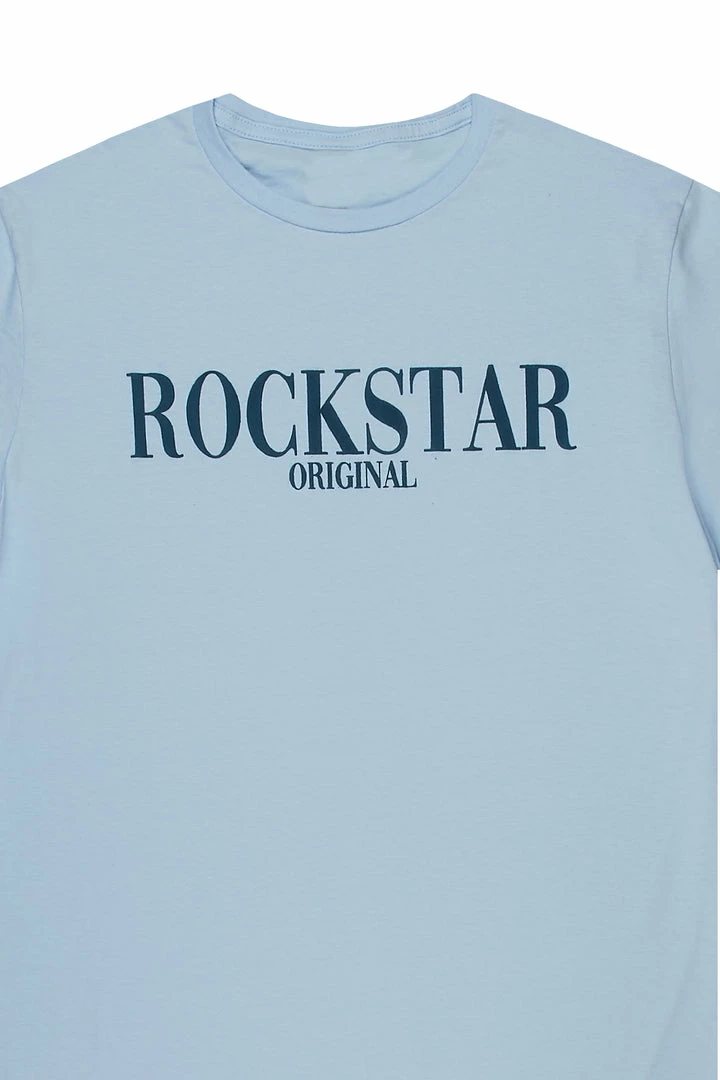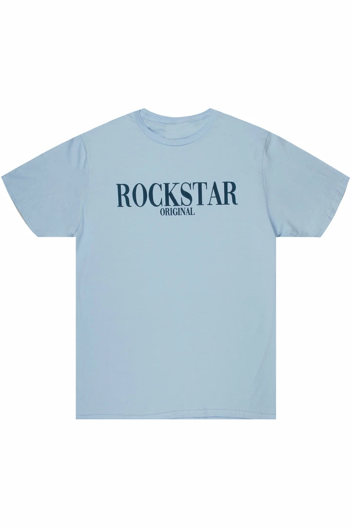 Rockstar Original Men’s tee in blue. Featuring a puff printed RSO logo, crew neckline and relaxed fit. This essential tee is made with premium cotton threading for all day comfort.
