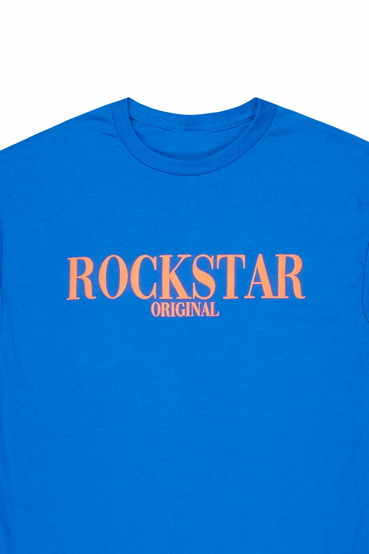 Rockstar Original Men’s tee in royal blue. Featuring a puff printed RSO logo, crew neckline and relaxed fit. This essential tee is made with premium cotton threading for all day comfort.
