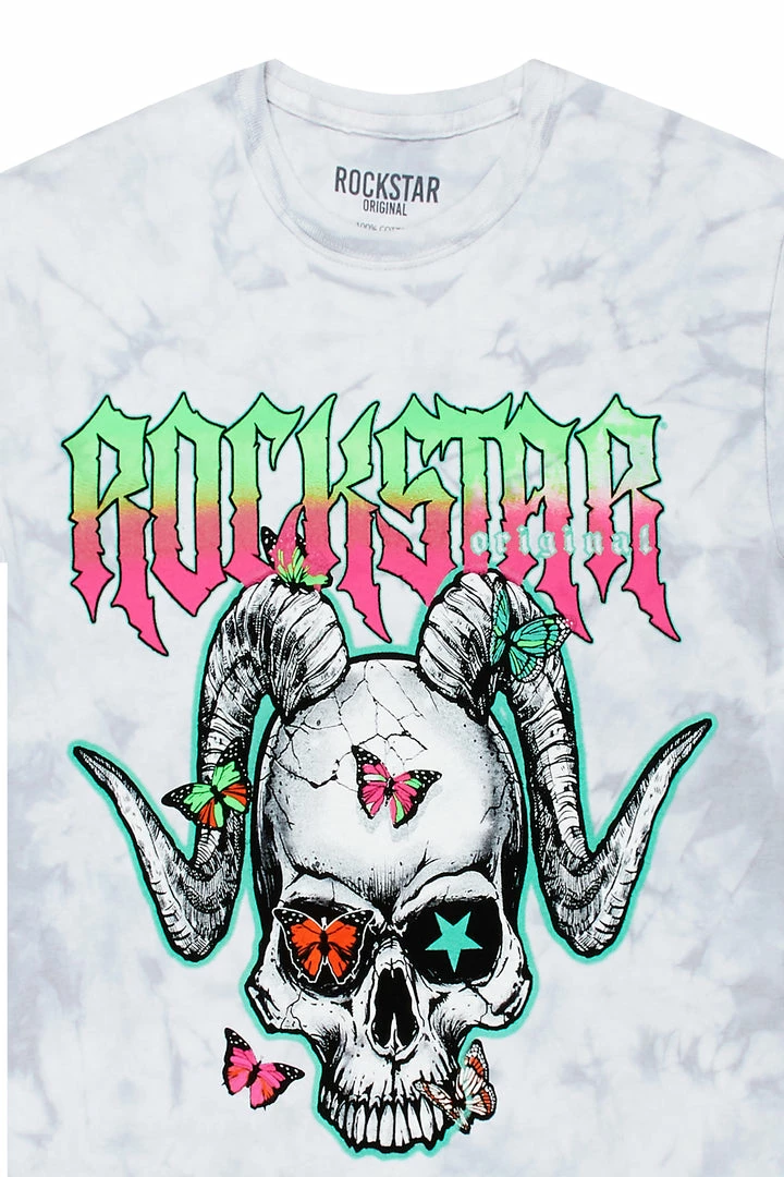 Rockstar Original Men’s tee in tie-dye white. Featuring a duo-tone RSO logo with a multi color skull graphic to match. Accenting a relaxed fit with a crew neckline and premium cotton threading for maximum comfort and style.