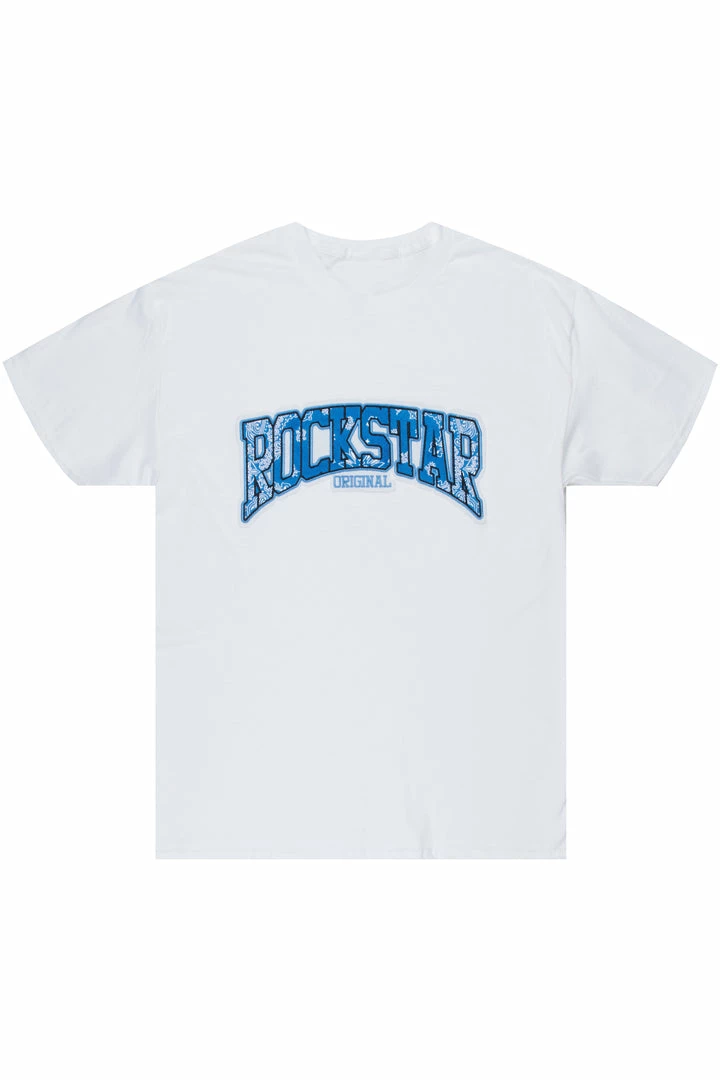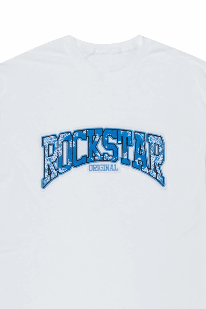 Rockstar Original Men’s tee in white.Β Featuring a printed paisley RSO logoΒ across the chest. This unique tee accents a crewneck line, lightweight wear and premium cotton threading for style and comfort.Β