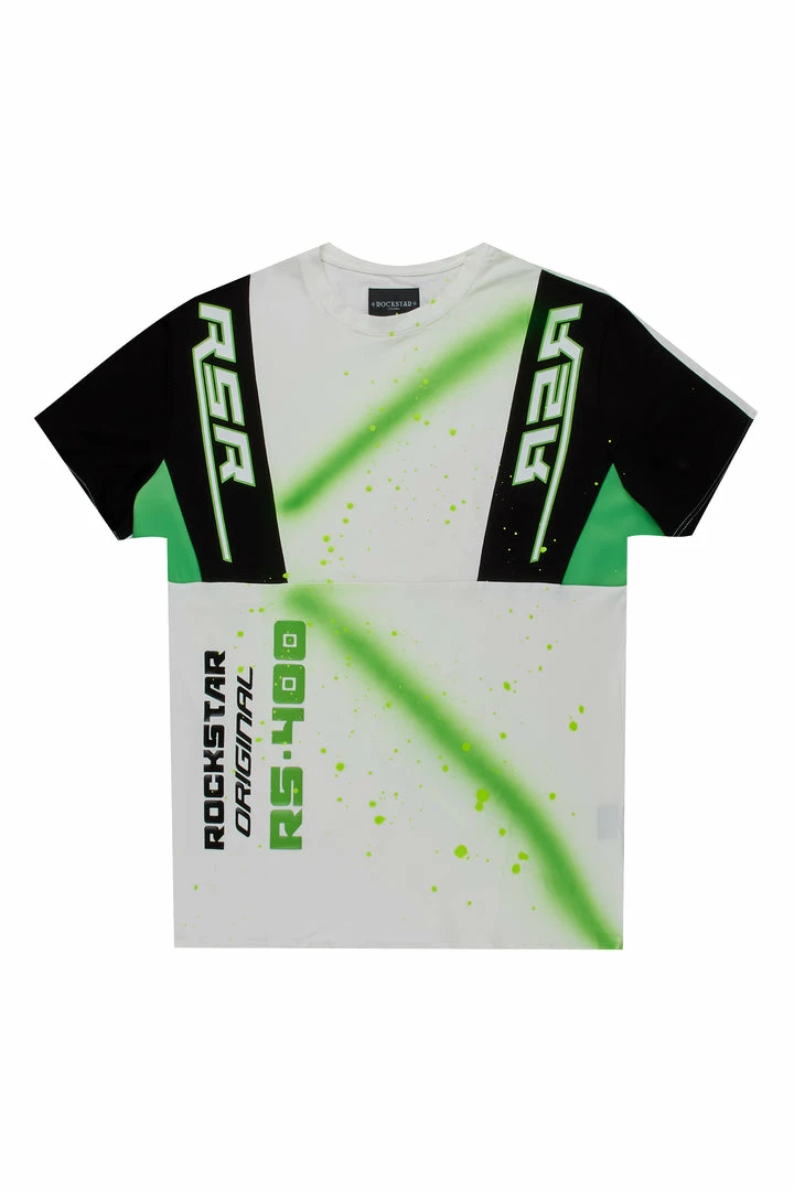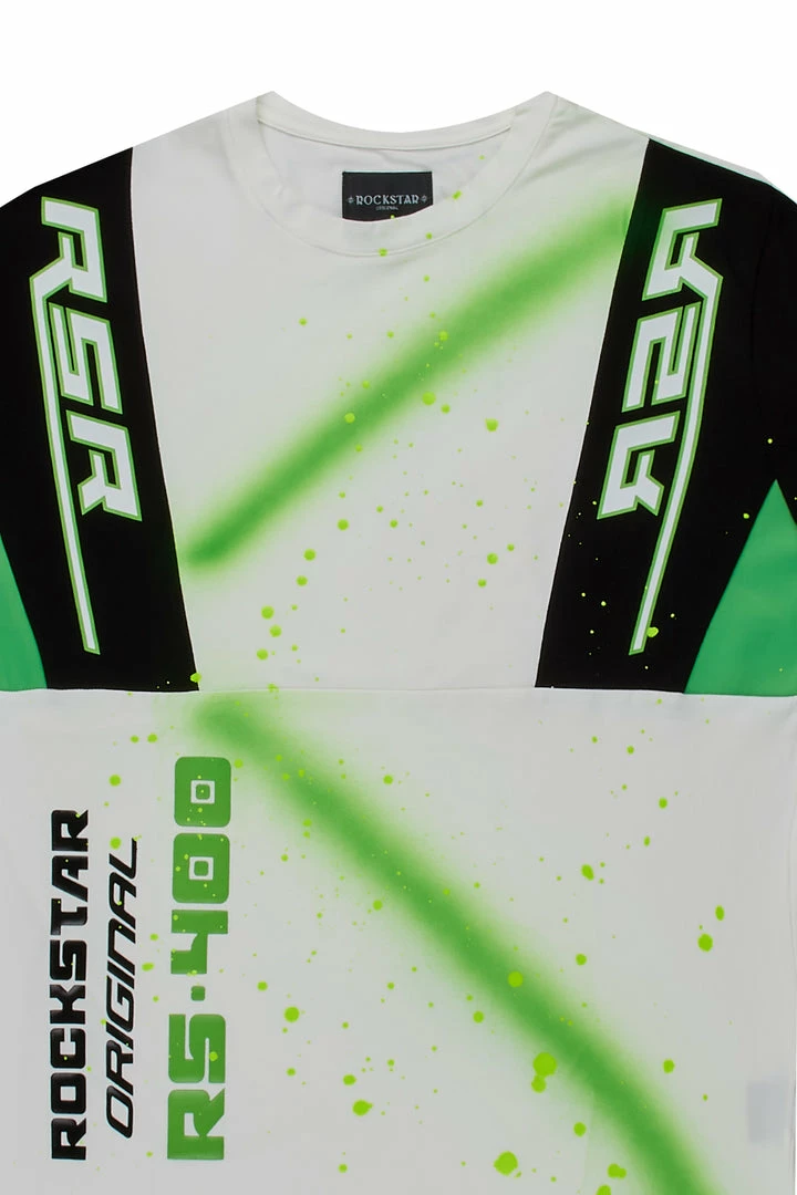Rockstar Original Men’s tee in white. Featuring racer style RSO logos with color block designing and custom splatter paint to match. Accenting a relaxed fit with a crew neckline and premium cotton threading for maximum comfort and style.