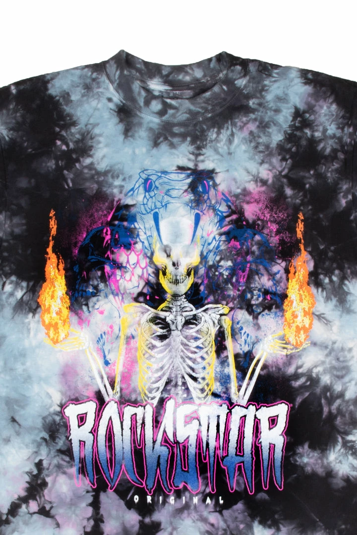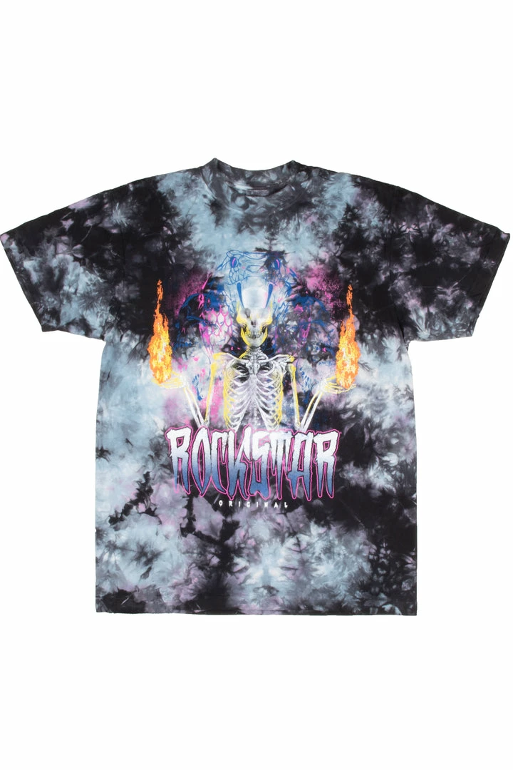 Rockstar Original Men’s tee in tie-dye black. Featuring a RSO logo with a multi color skull graphic to match. Accenting a relaxed fit with a crew neckline and premium cotton threading for maximum comfort and style.