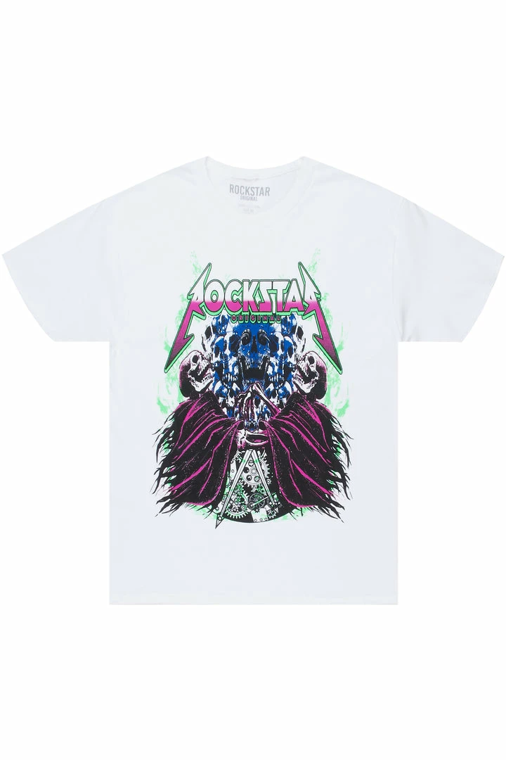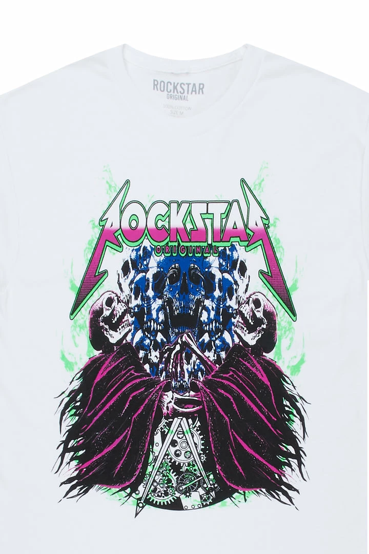 Rockstar Original Men’s tee in white. Featuring a RSO logo with a multi color graphic to match. Accenting a relaxed fit with a crew neckline and premium cotton threading for maximum comfort and style.