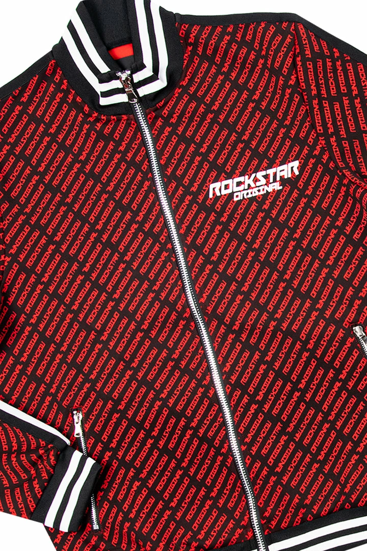 Rockstar Original men’s track set featuring a two-piece track jacket and track pant. Track jacket feature’s a RSO logo on the front with racing stripes details on side and bottom hem. RSO graphic text print all throughout. High quality zipper closure. Track pant feature’s RSO logo on the front with racing stripes details on side. RSO graphic text print all throughout. High quality zipper closure with drawstring waistband.
