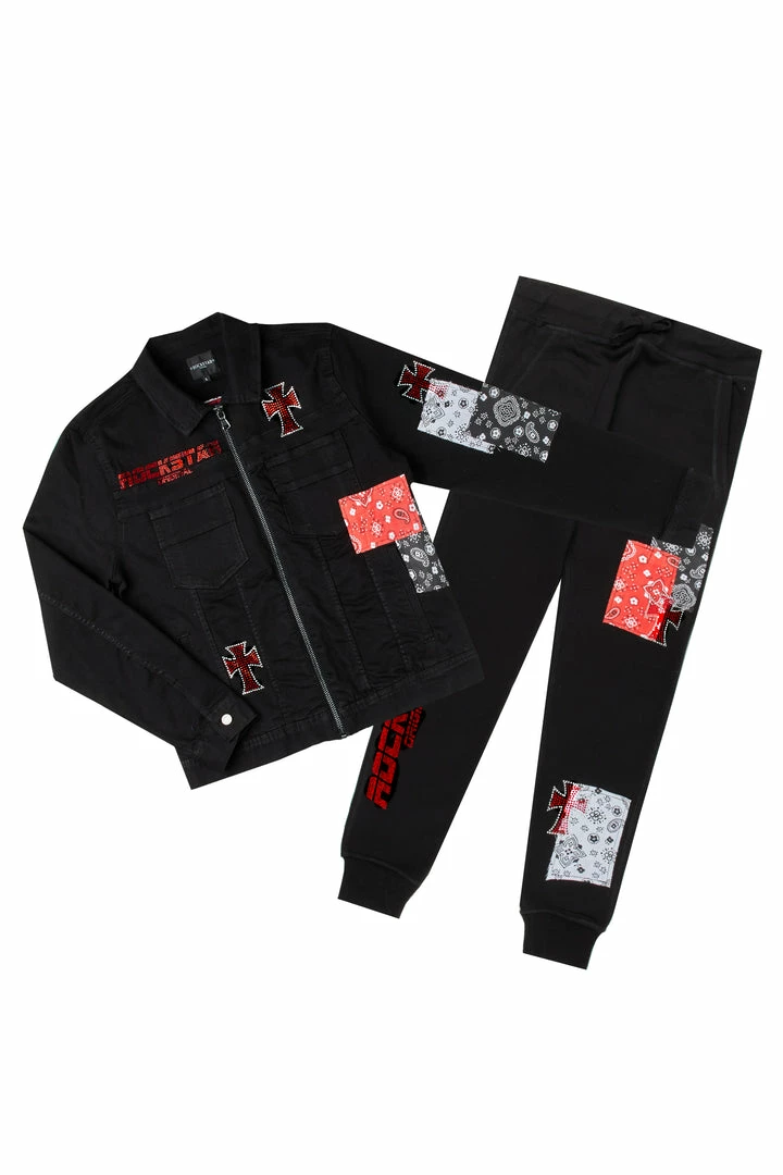 Flash Sale 🌟 MENS TRACK SETS ENOC DENIM JACKET/TRACKPANT SET-BLACK 😀