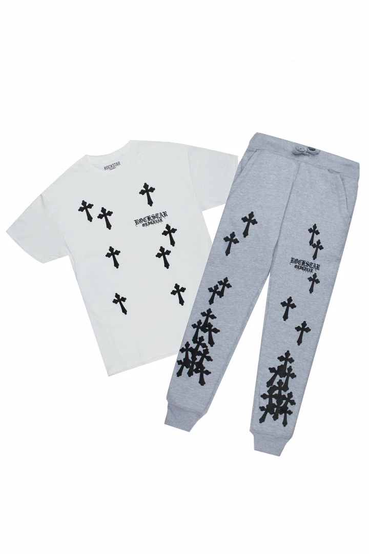 Promo 🌟 MENS TRACK SETS JERRY GRAPHIC T-SHIRT TRACKSET-WHITE/GREY ⭐