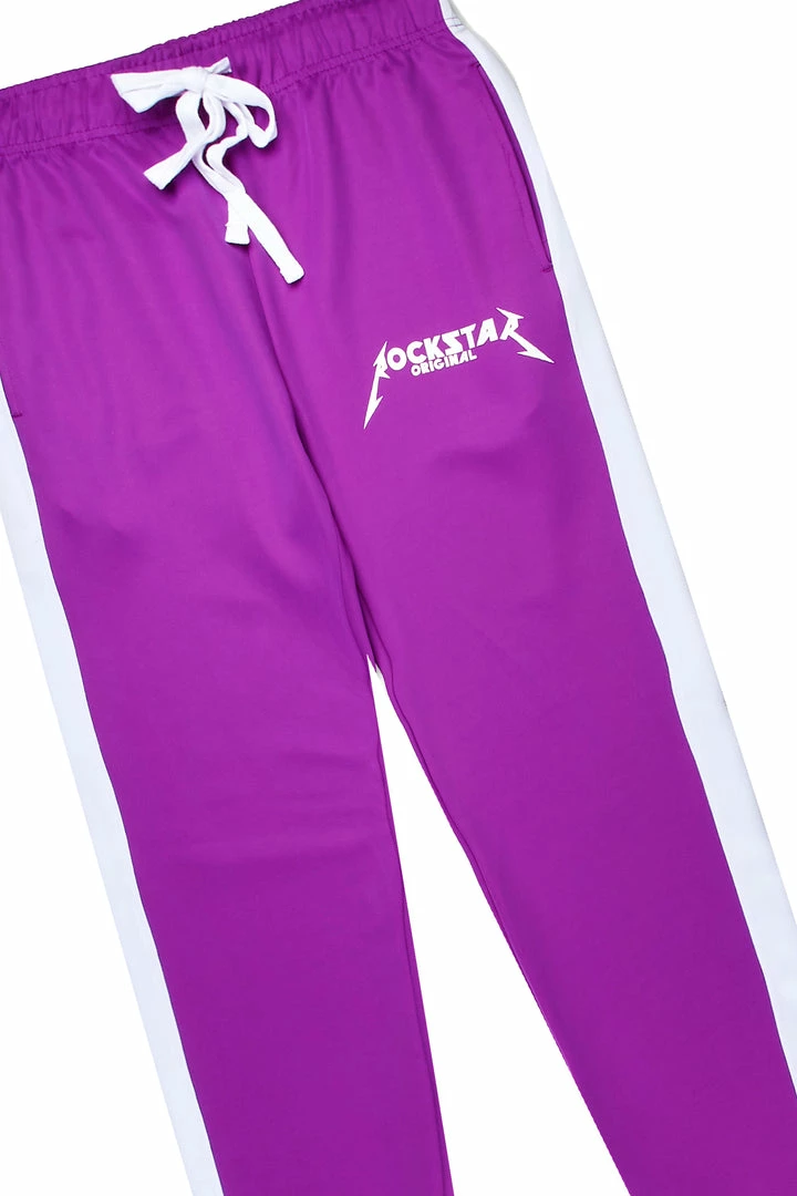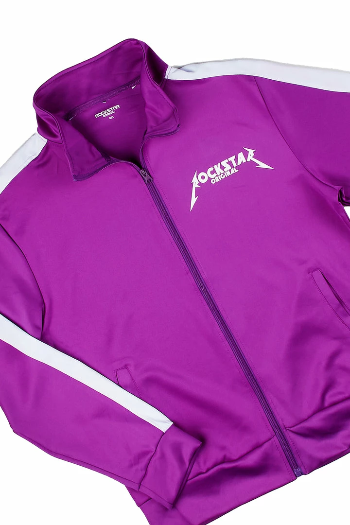 Rockstar Original Men’s two-piece tracksuit set in purple. Featuring classic printed RSO logos and a racer stripe finish throughout. Designed as a lightweight wear with a high quality front zip stand-up collar closure and side pockets while bottoms accent a drawstring waistband, pockets throughout and ankle zipper inseams. Stay fresh with this effortless ‘fit.