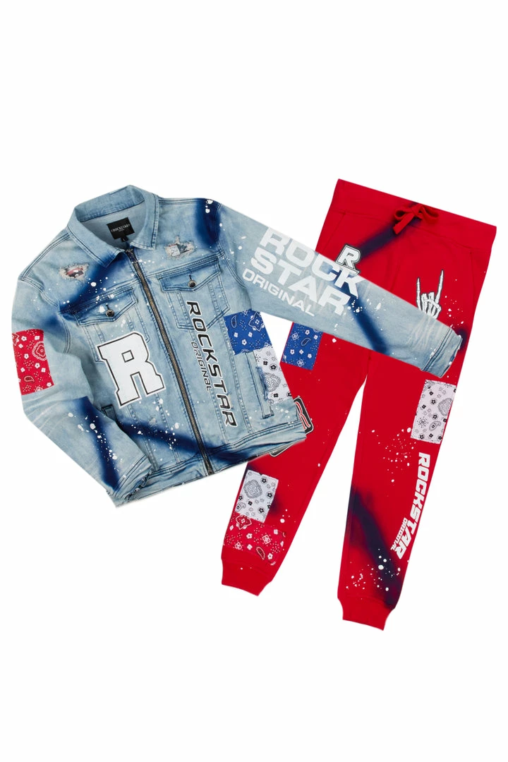 Budget 🛒 MENS TRACK SETS KRON DENIM JACKET/TRACKPANT SET-RED 👏