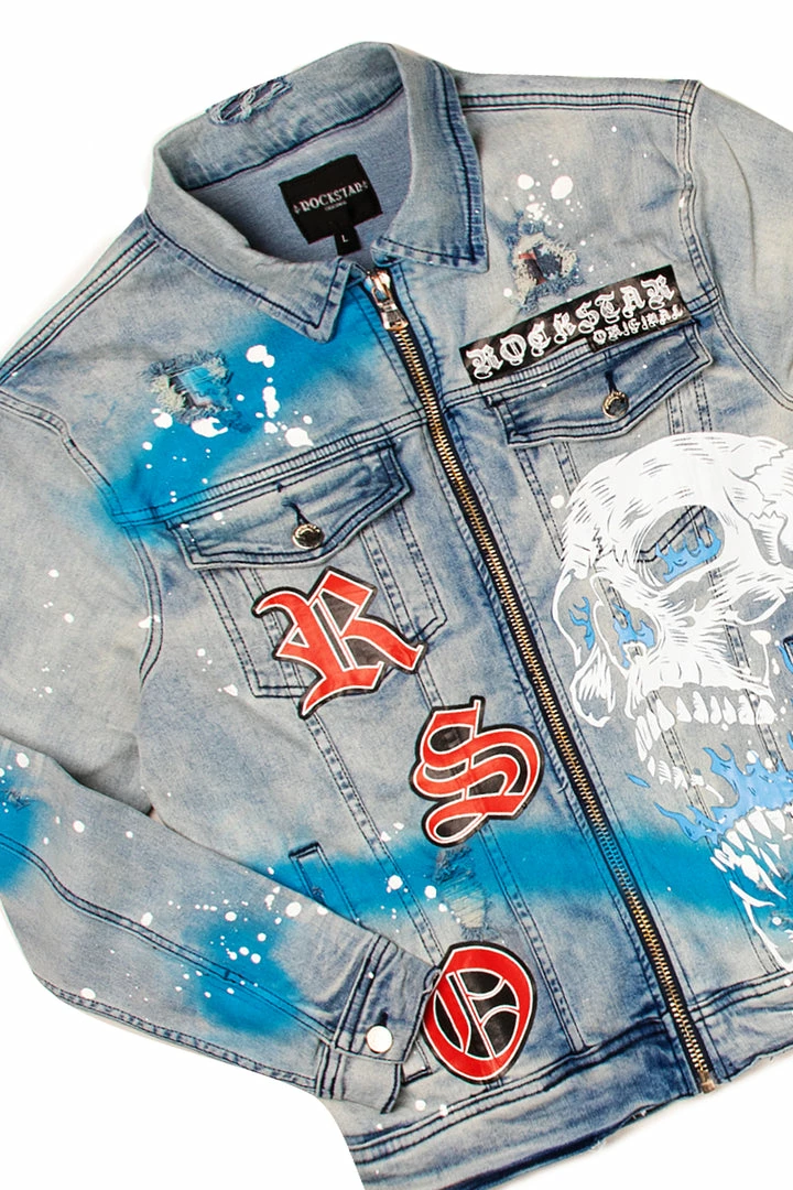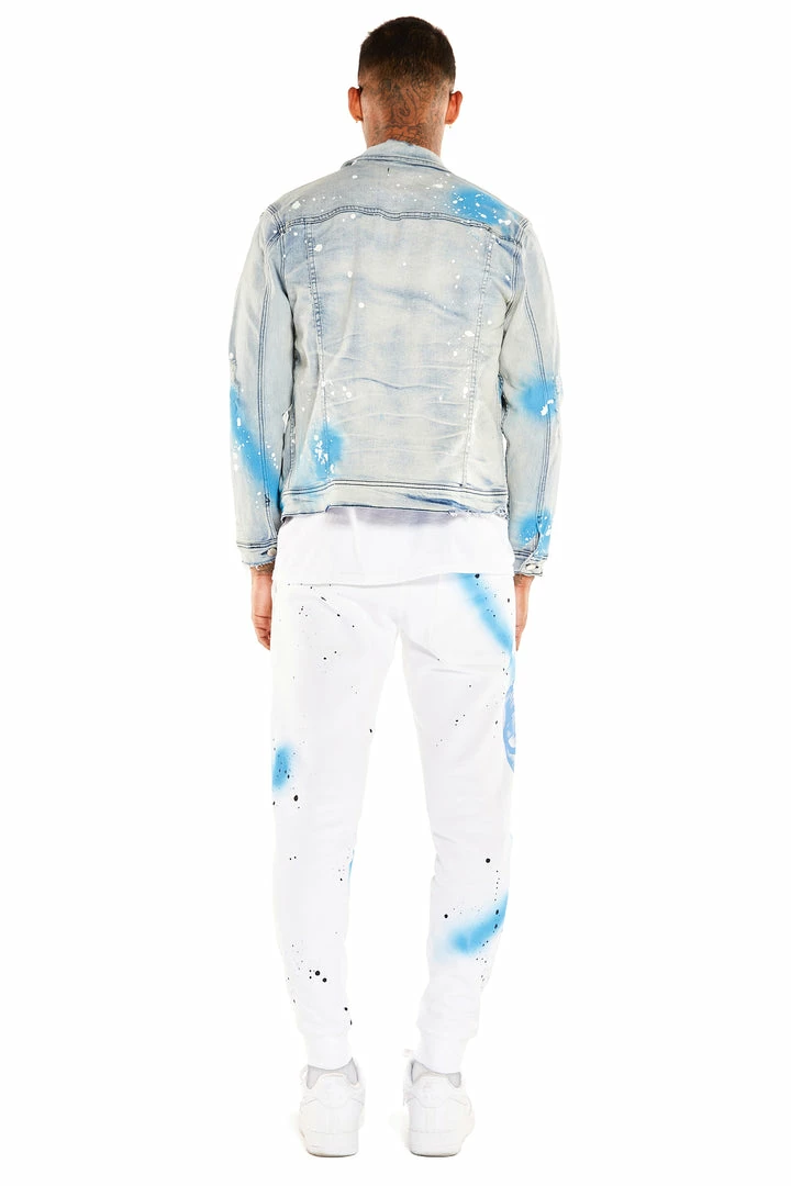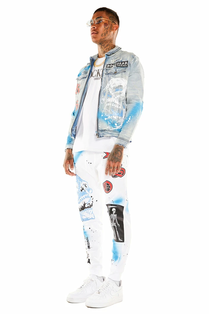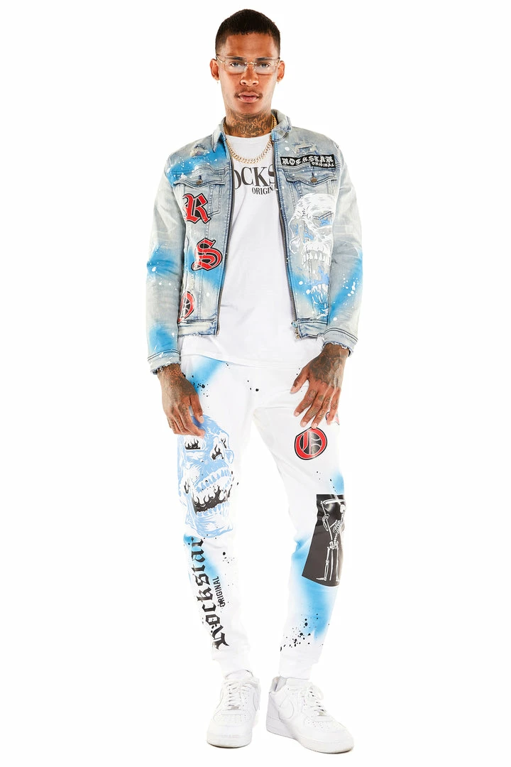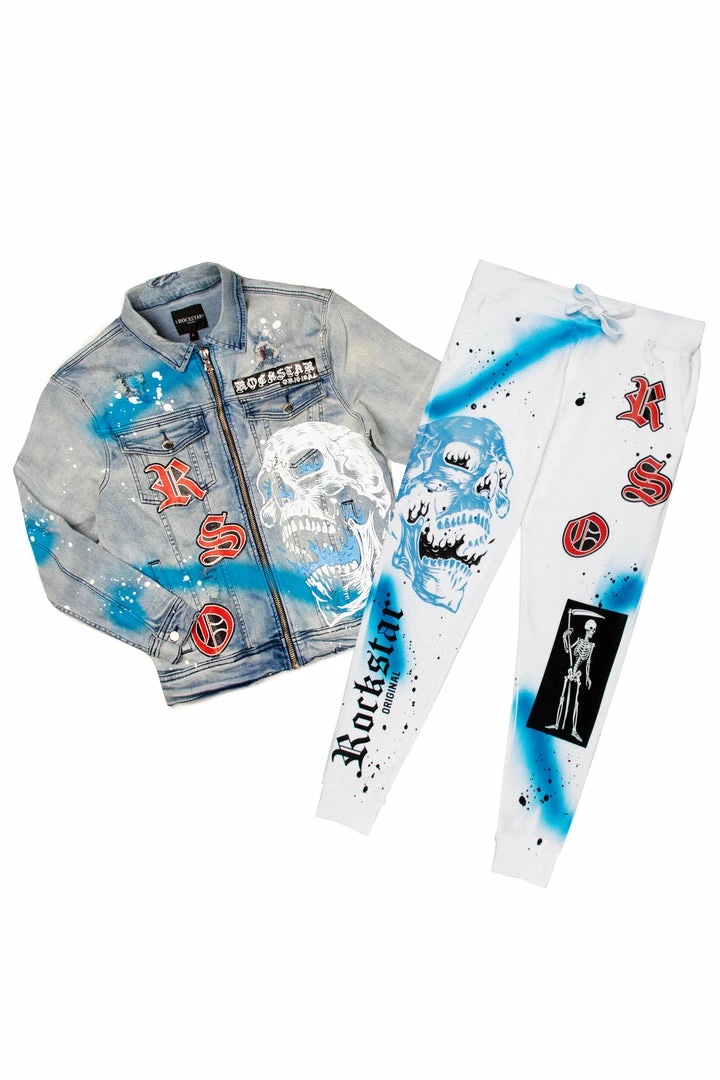Best Pirce 👍 MENS TRACK SETS ROMAN DENIM JACKET/TRACKPANT SET-WHITE 🌟