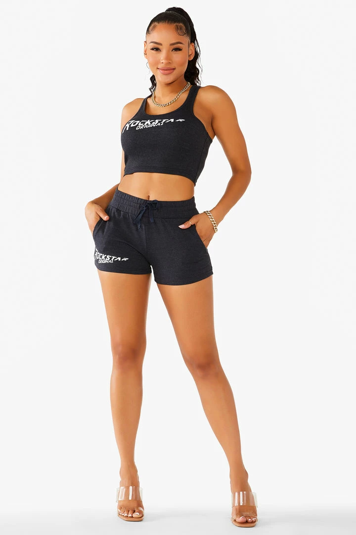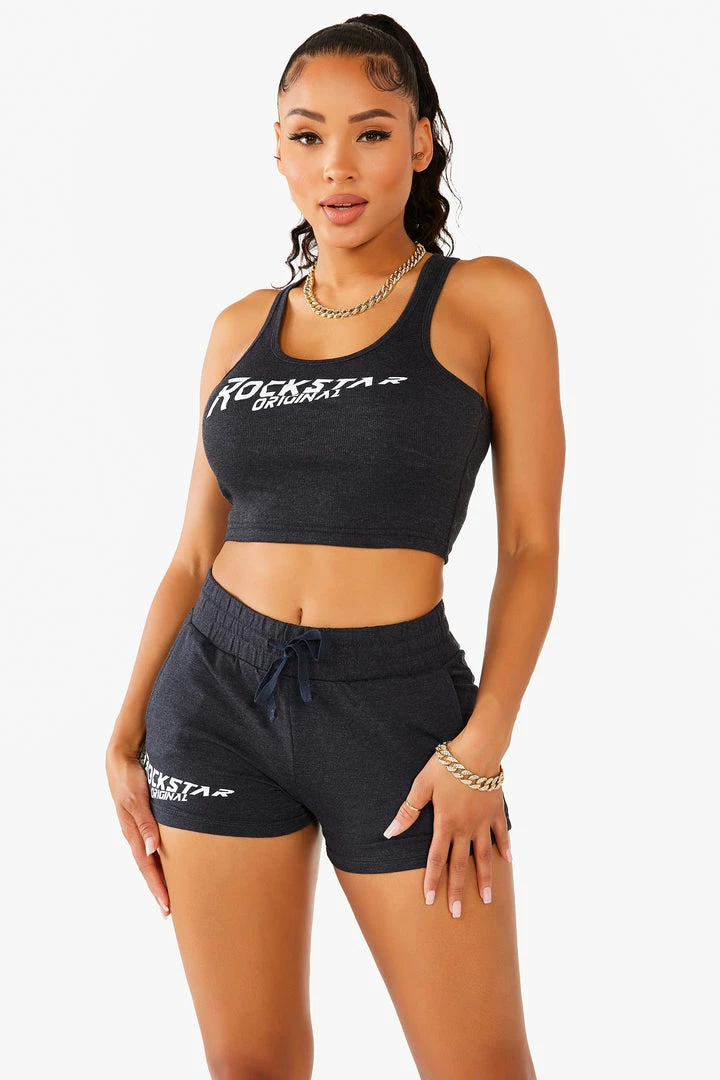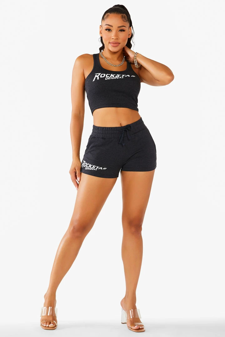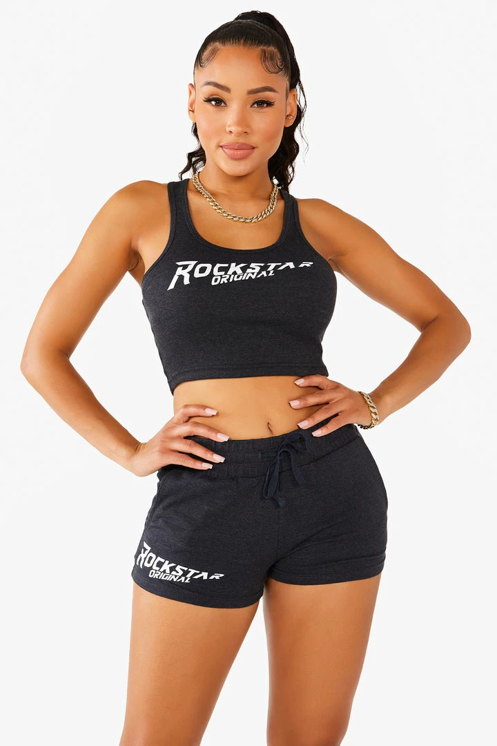 Rockstar Original Women’s racerback tank top and short set with pockets in a soft terry with Rockstar Original logos.