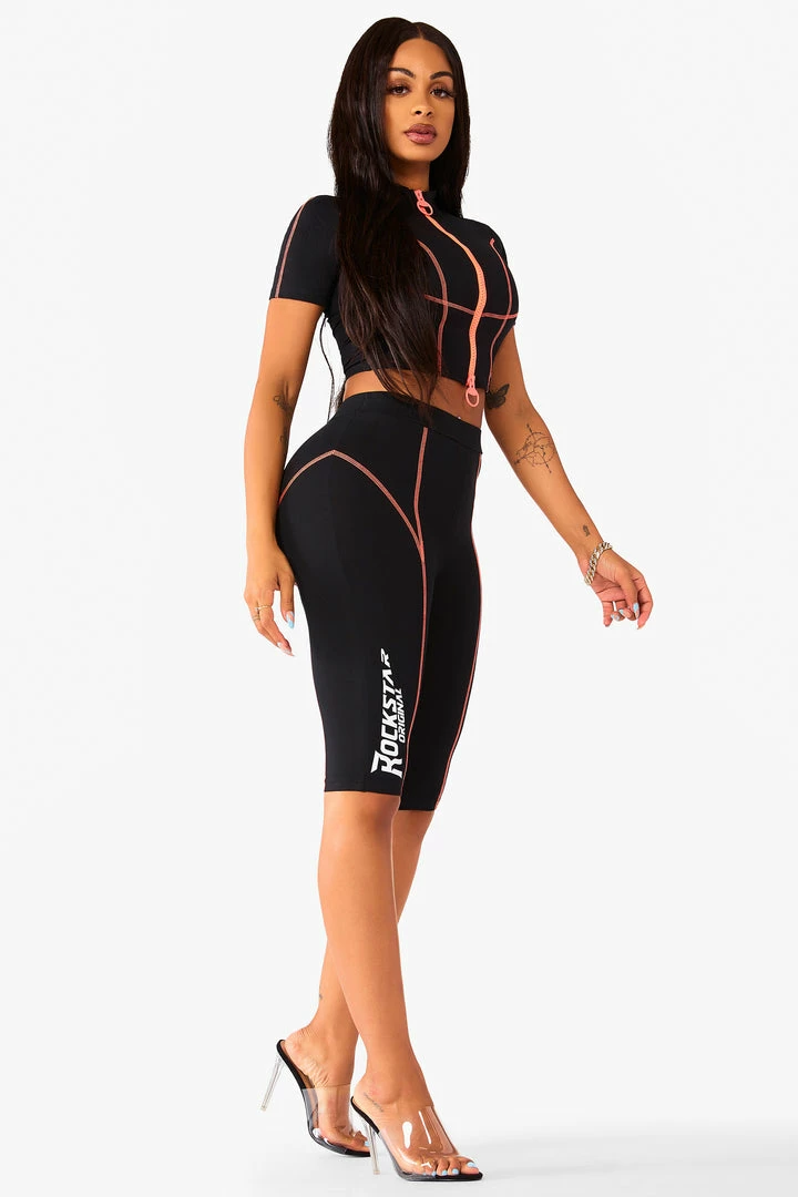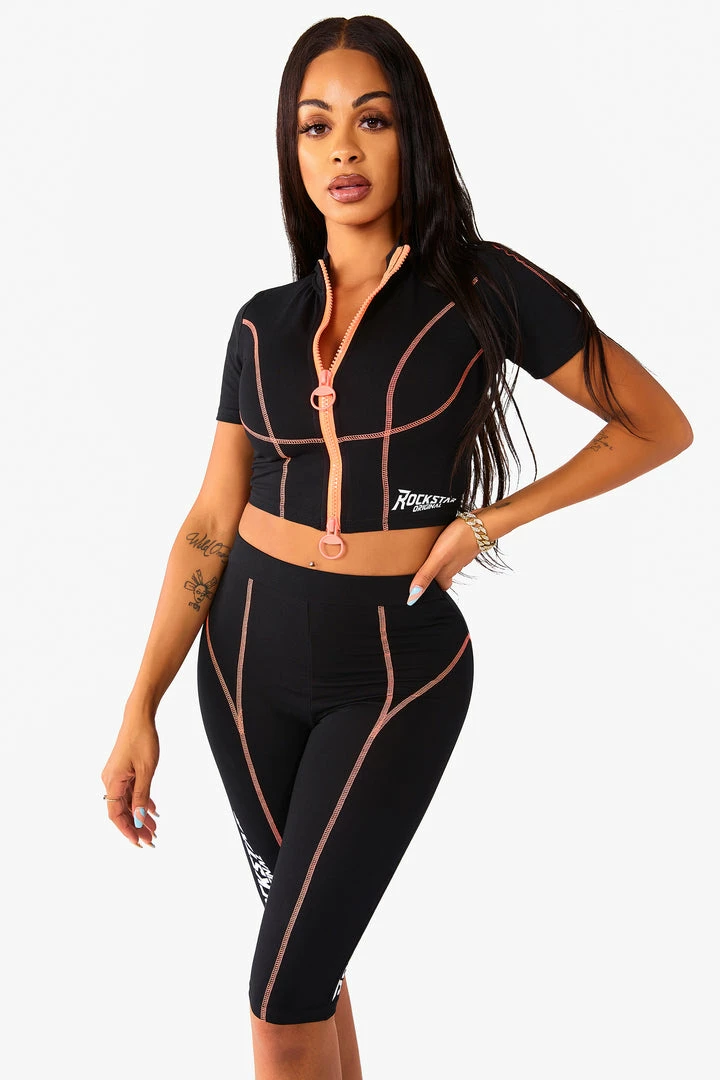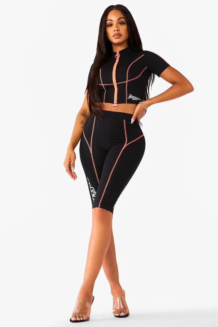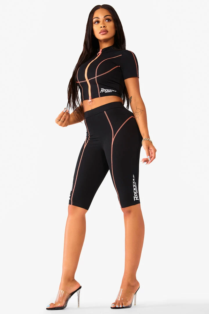 Rockstar Original Women’s two-piece biker set with contrast seams and bold Rockstar logos.