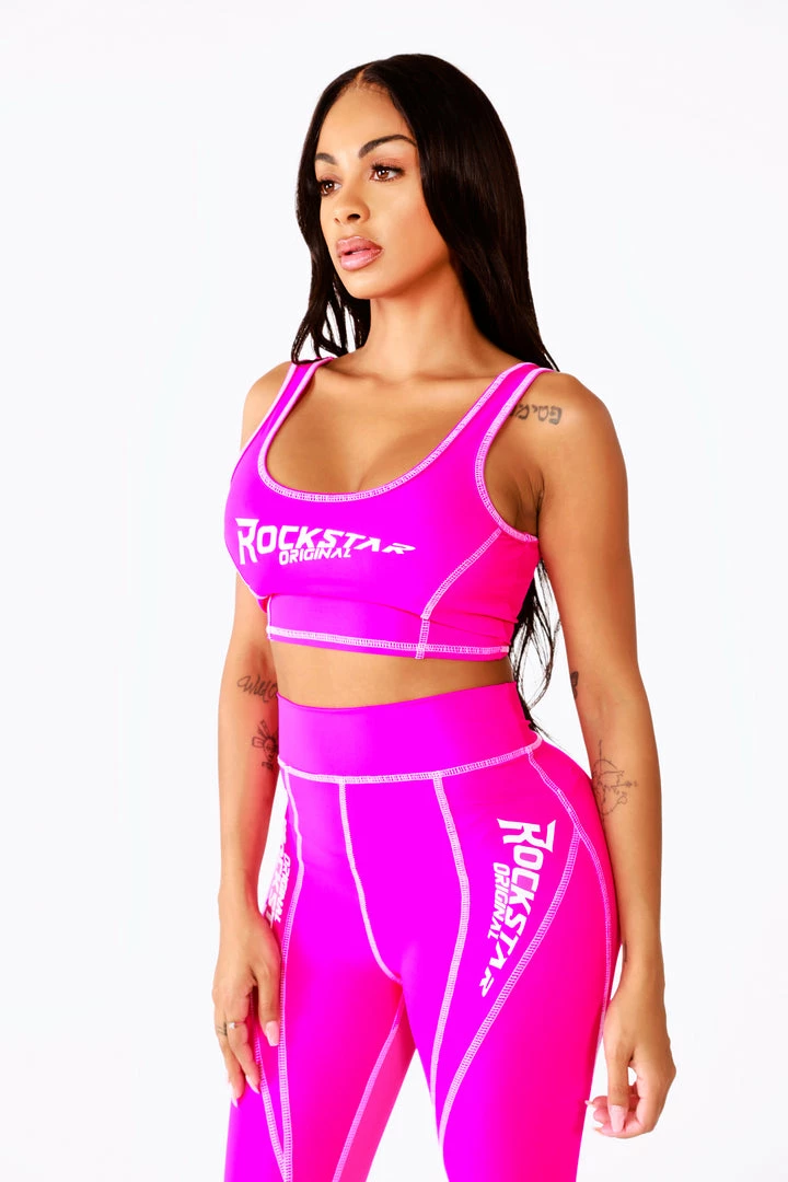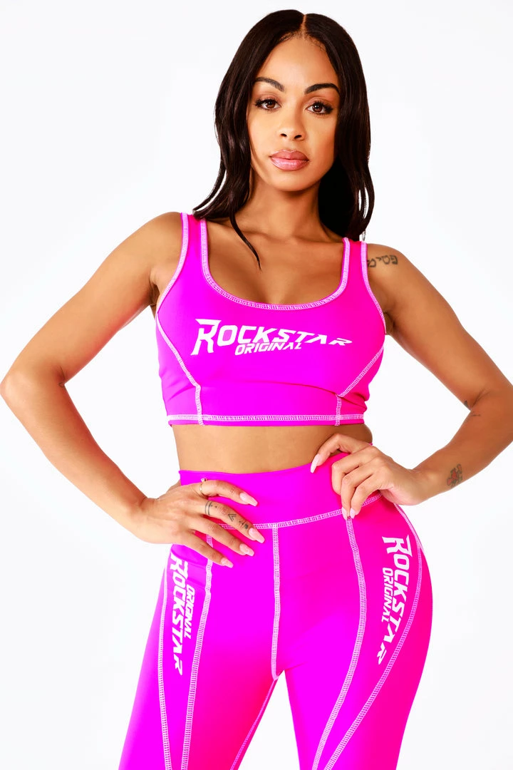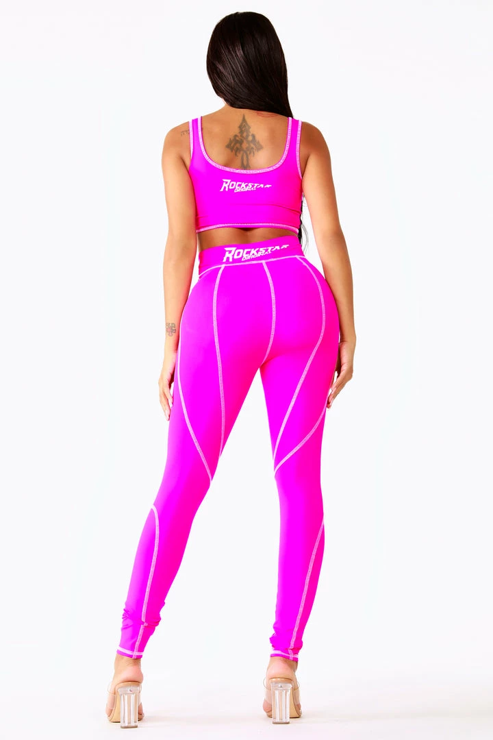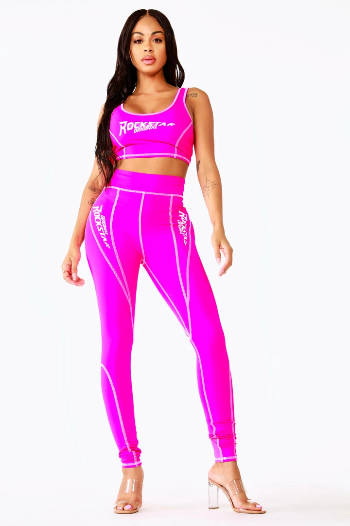 Rockstar Original Women’s two-piece active legging set with matching tank and contrast topstitch with bold Rockstar Original logos.