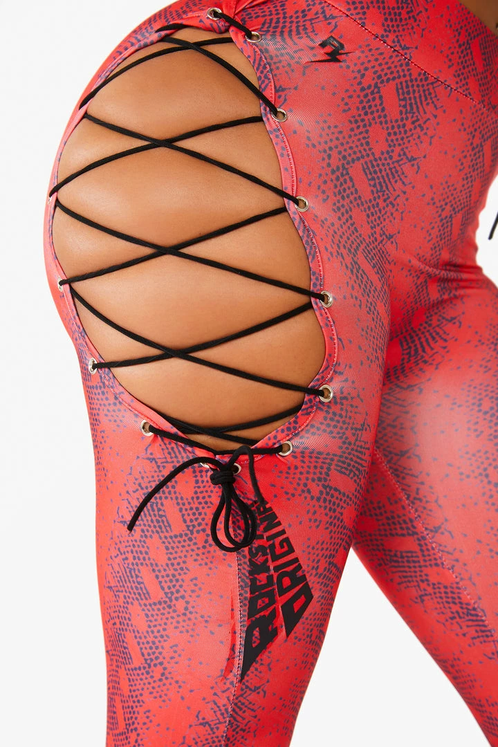 Rockstar Original women’s two piece active setย of sports bra and leggings, detailed with ties at the hips and bust as well as subtle RSO logos.