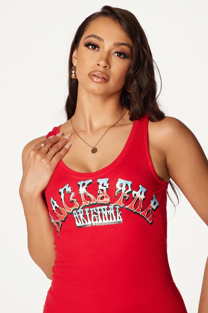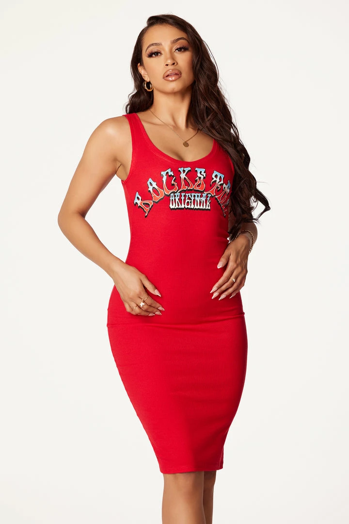 Rockstar Original Women’s dress in red. Featuring aย scoop neckline with aย printed RSO logoย on the chest. Accenting a form-fitting silhouette and a midi length with premium cotton for a comfortable staple piece.