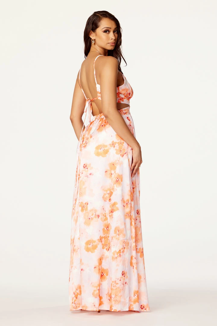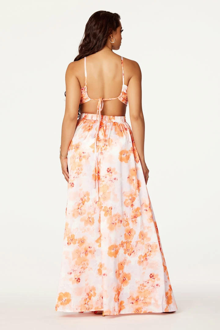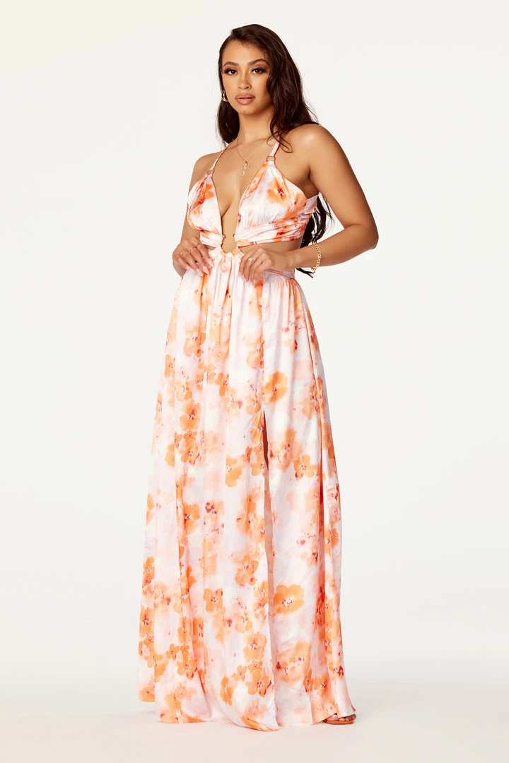 Rockstar Original Women’s dress in peach. Featuring a scoop neckline with skinny straps and a posterior tie closure. Accenting a split hem with a midi length and a relaxed silhouette. Style with nude heels for a gorgeous Rockstar babe look.