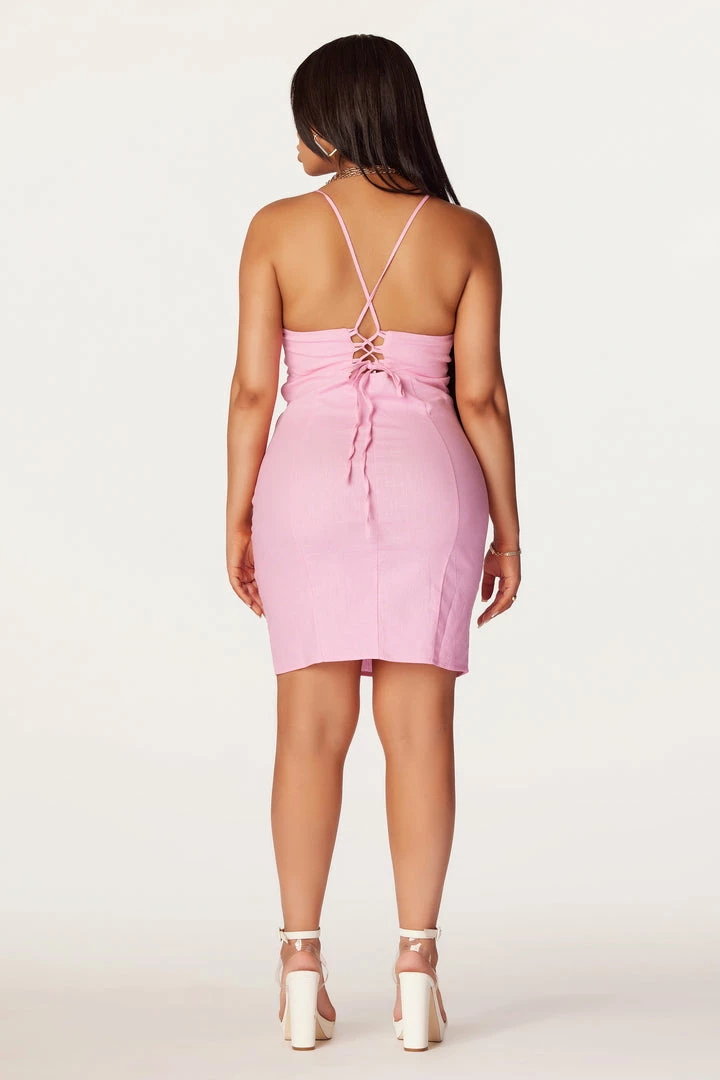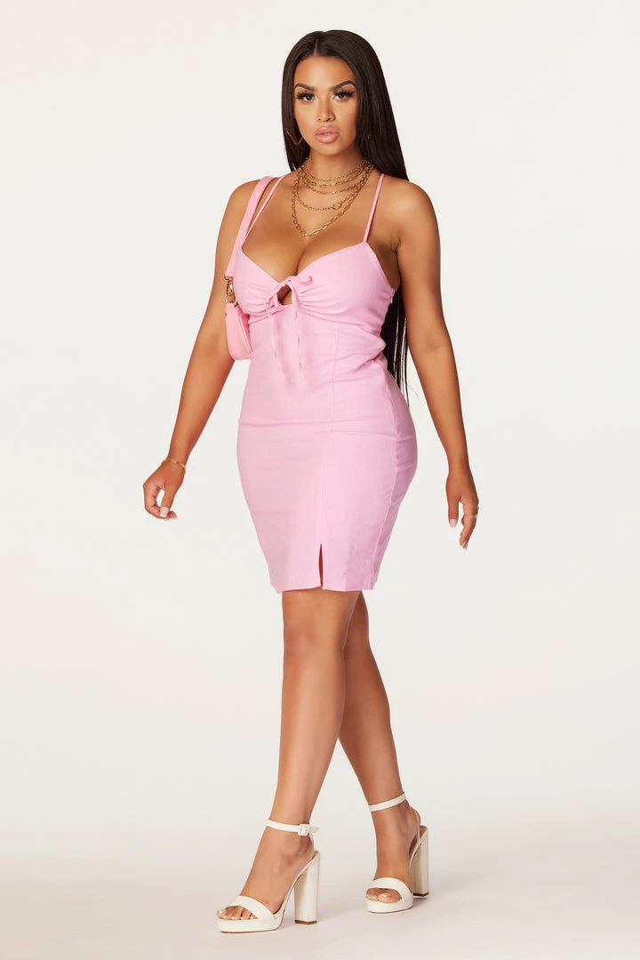 Rockstar Original Women’s dress in soft pink. Featuring aย sweetheart neckline with an x-cross back tie.ย Accenting an O-ring front tie with a form-fitting silhouette and a mini length. Style with strappy heels for the daytime look!