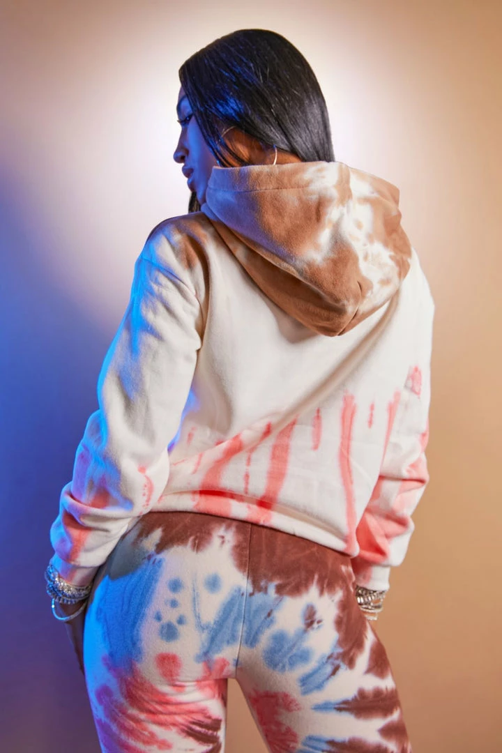 Rockstar Original Women’s hoodie in multi color tie-dye. Featuring a printed RSO logo across the bust. This hoodie accents a front pocket with a drawstring hood, cuffed hems and premium cotton threading for style and comfort.