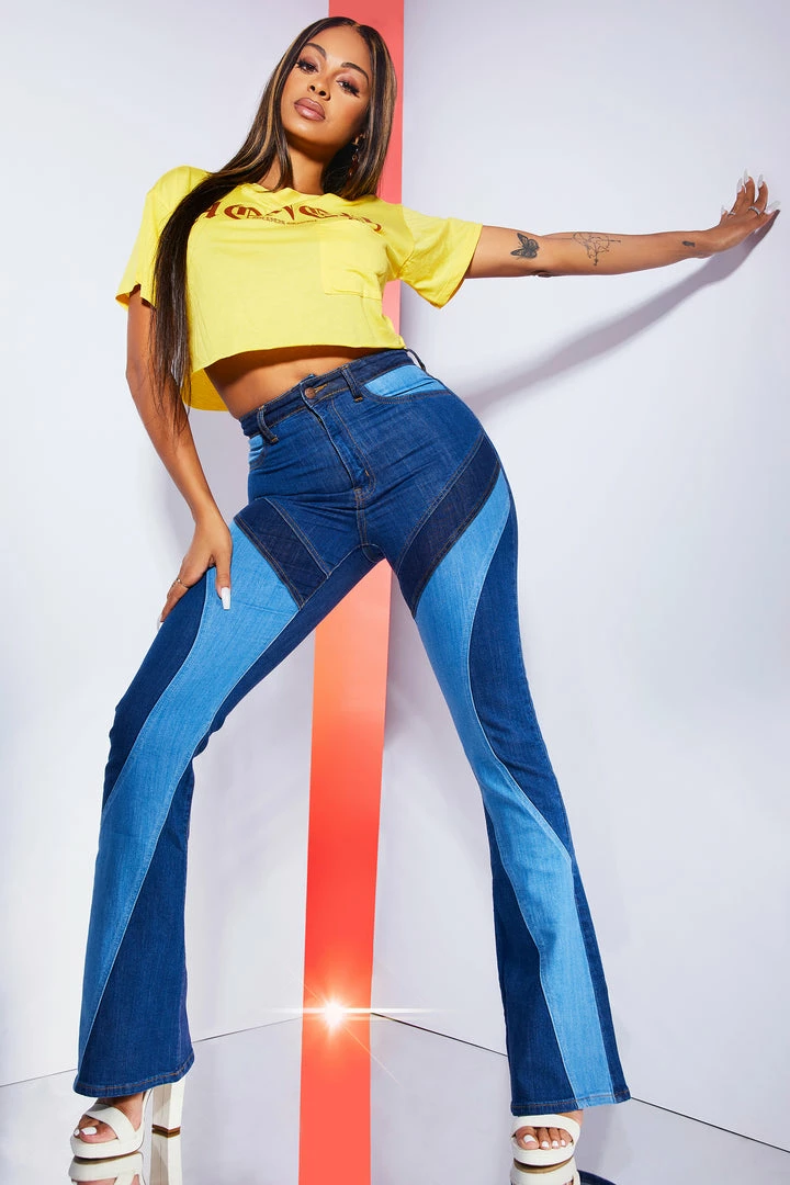 Rockstar Original Women’s denim jean in medium wash. Featuring a high-waisted, flared silhouette with a high quality front button closure. These must-have 70s inspired jeans accent color blockย designing and premium cotton threading for style that will move with you and for you as you command all the attention!