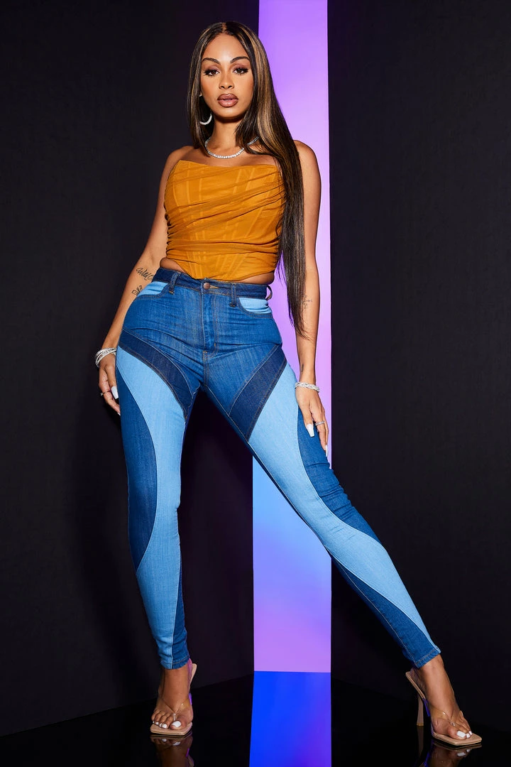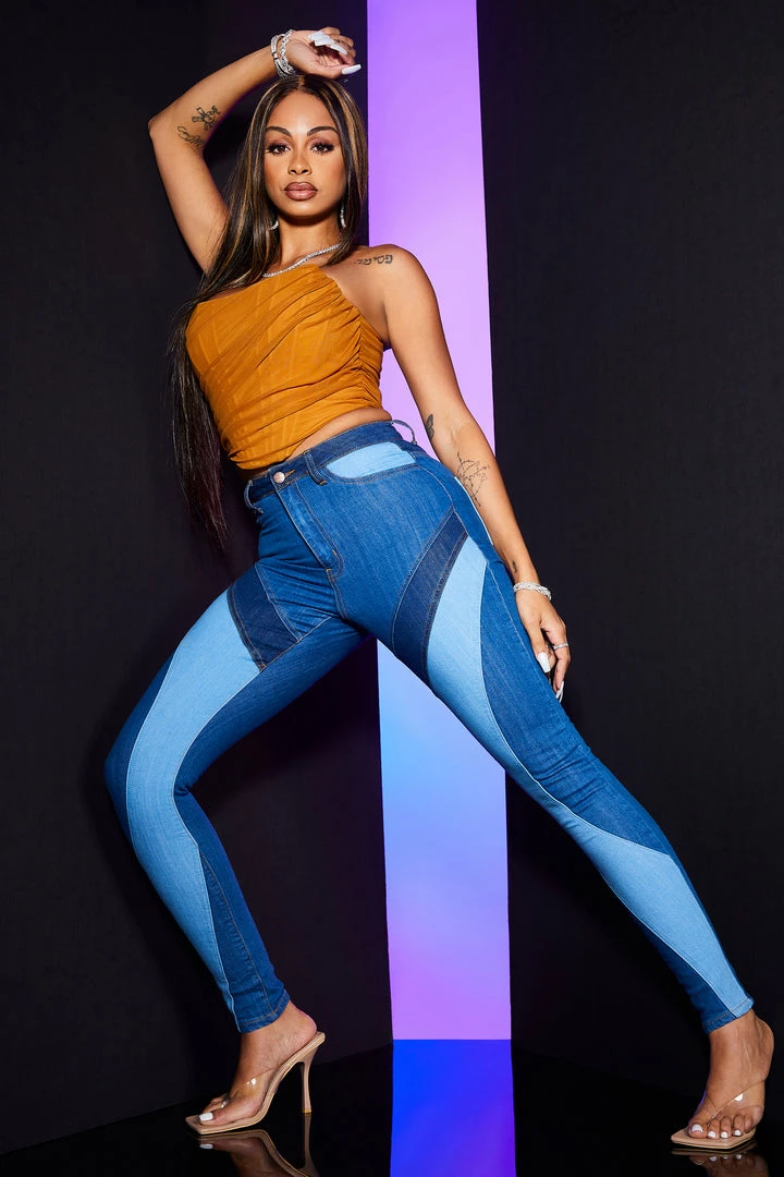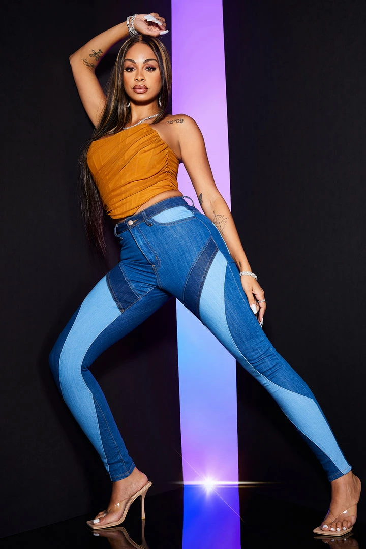 Rockstar Original Women’s denim skinny jean in medium wash. Featuring a high-waisted, form-fittingΒ silhouette with a high quality front button closure. These must-have 70s inspired jeans accent color blockΒ designing and premium cotton threading for style that will move with you and for you as you command all the attention!