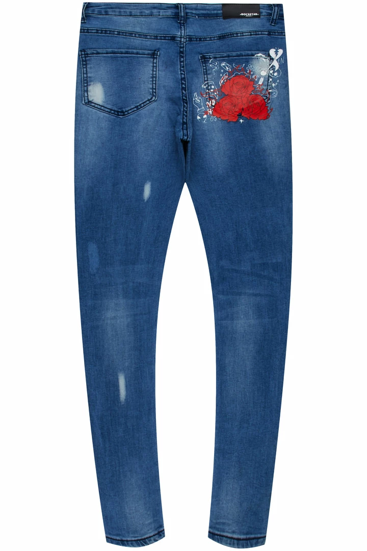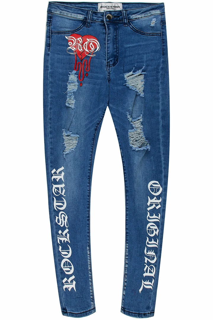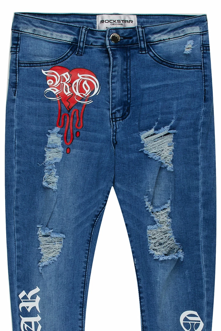 Rockstar Original Women’s denim jean in medium wash. Featuring a form-fitting skinny silhouette and multi color graphic prints throughoutย โ your hottest pants just got hotter! Style with a corset top and heels for the sweetest OOTD this season.