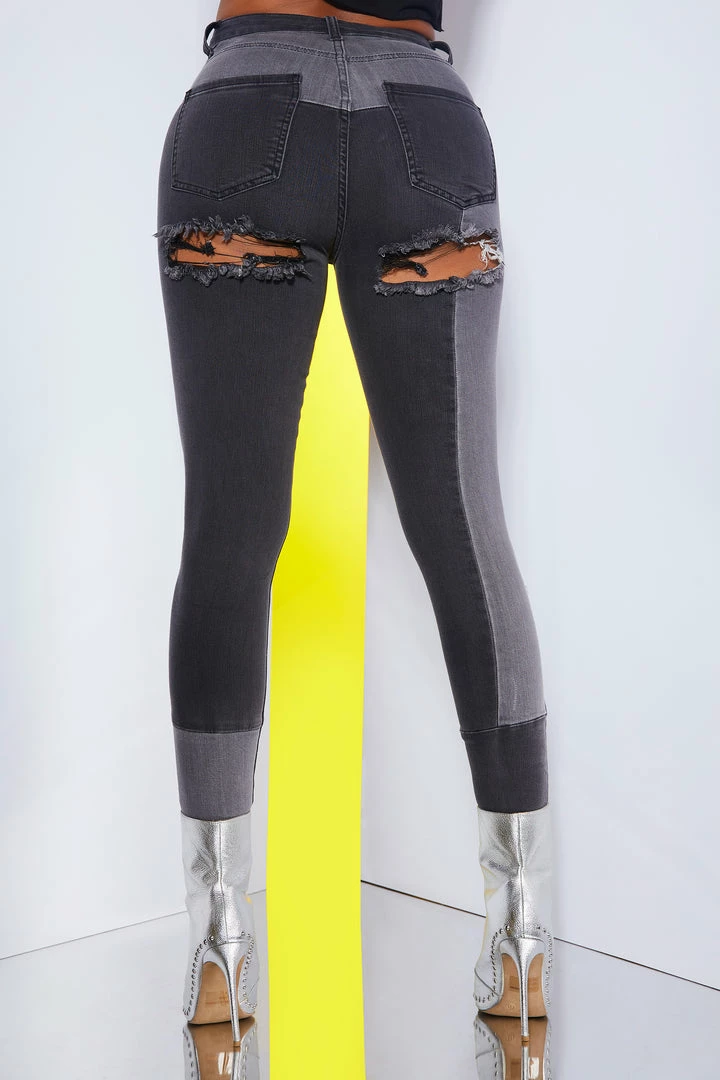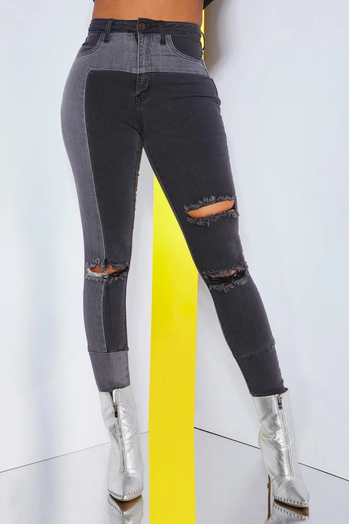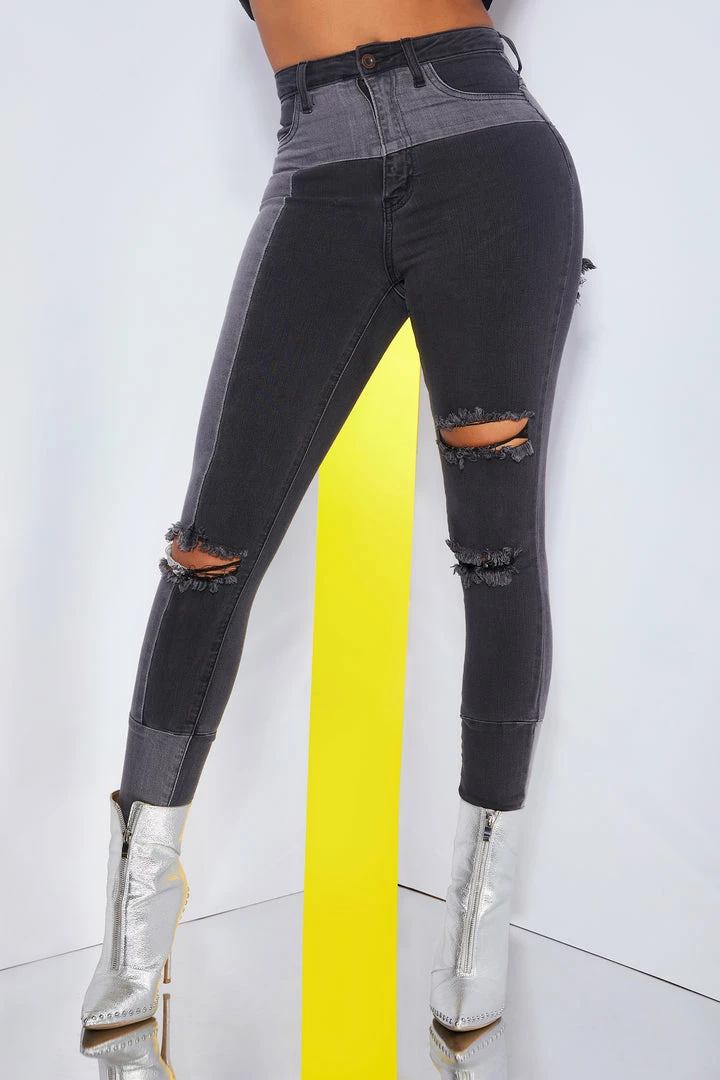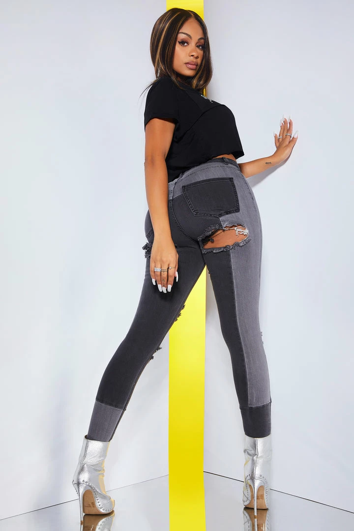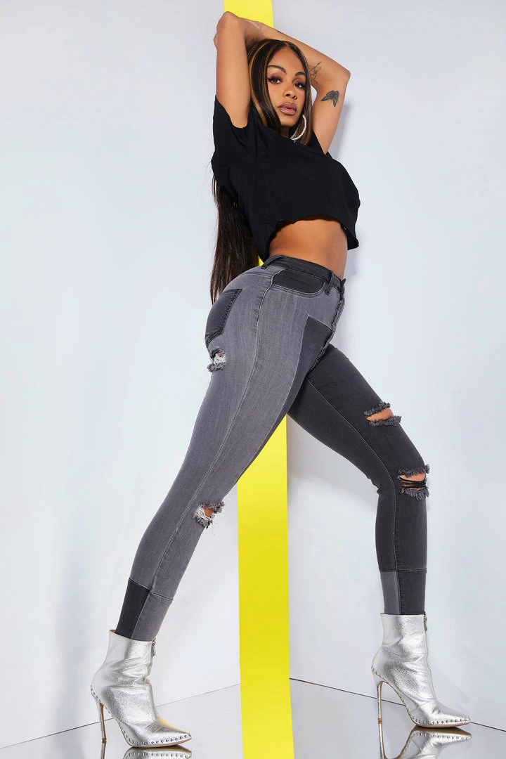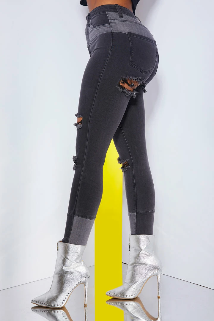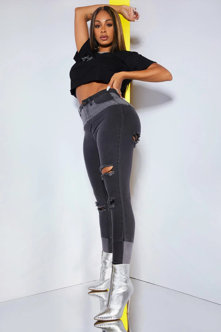 Rockstar Original Women’s denim skinny jean in gorgeous dark grey. Featuring a high-waisted, form-fitting silhouette with distressed detailing and a high quality front button closure. These must-have jeans accent duo-tone denim coloring and premium cotton threading for style that will move with you and for you as you command all the attention!