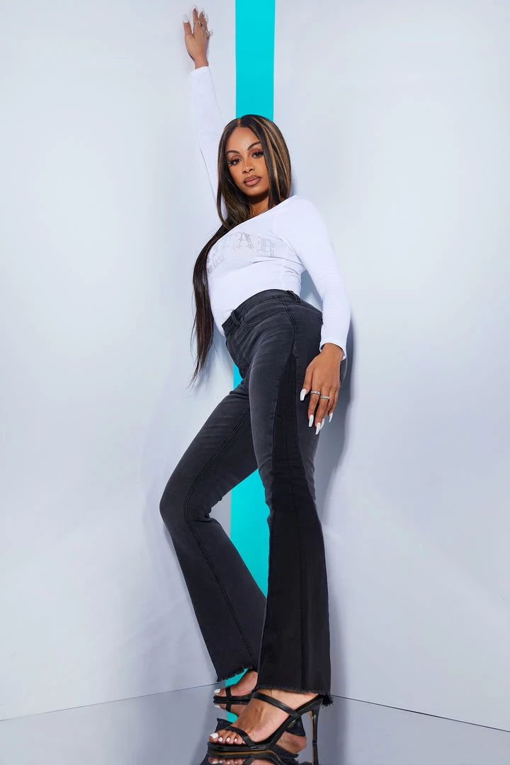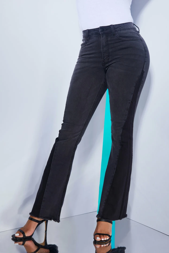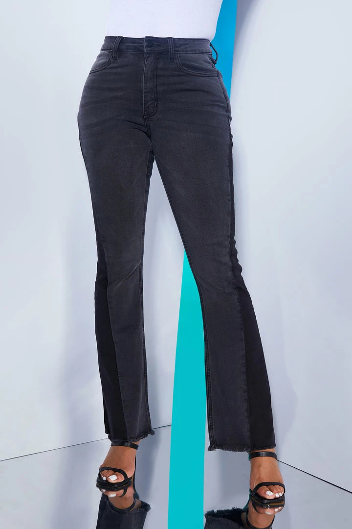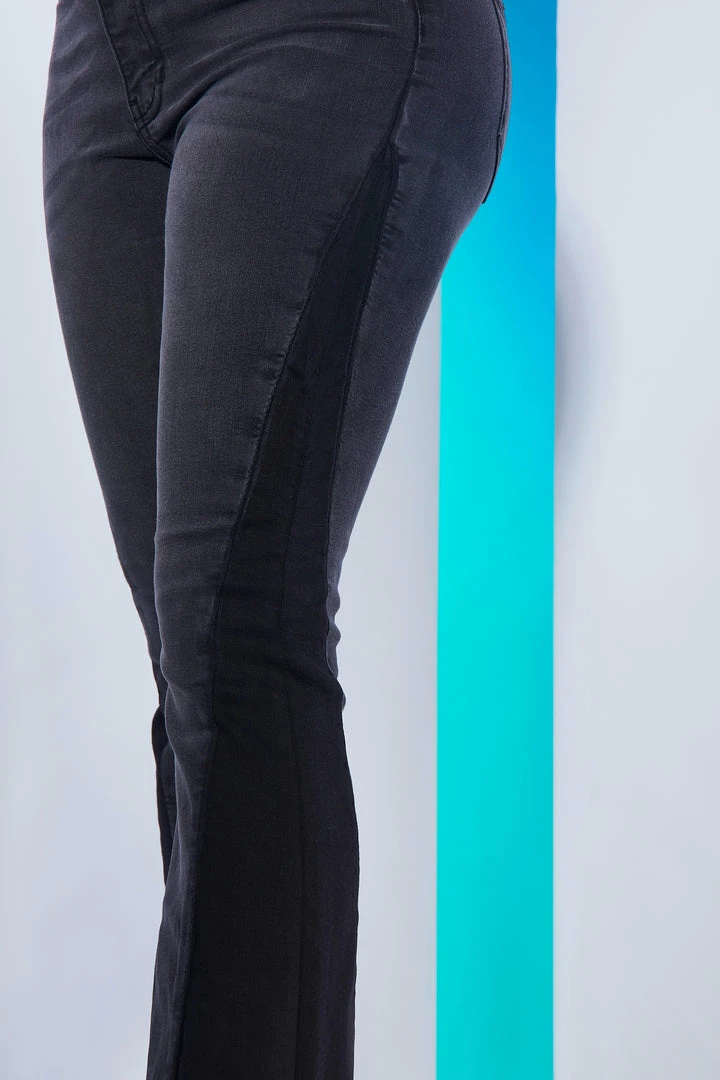 Rockstar Original Women’s denim jean in gorgeous grey. Featuring a high-waisted, flare silhouette with a high quality front button closure. These must-have jeans accent color block designing and premium cotton threading for style that will move with you and for you as you command all the attention!