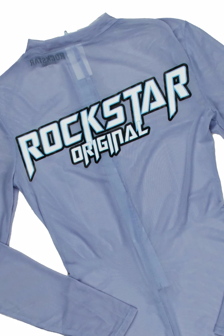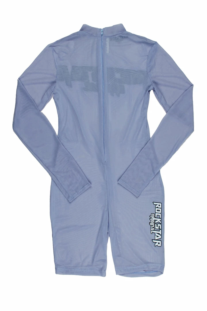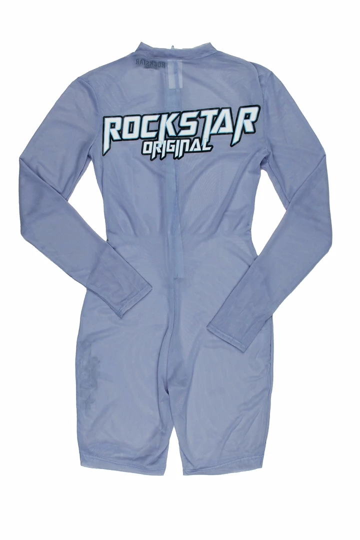 Rockstar Original Women’s one-piece romper in chambray blue. Featuring printed RSO logos throughout. Accenting long sleeves, breathable mesh fabric and a biker short length for a gorgeous form-fitting silhouette. Style with combat boots or your favorite pair of heels for the perfect Rockstar babe ‘fit!