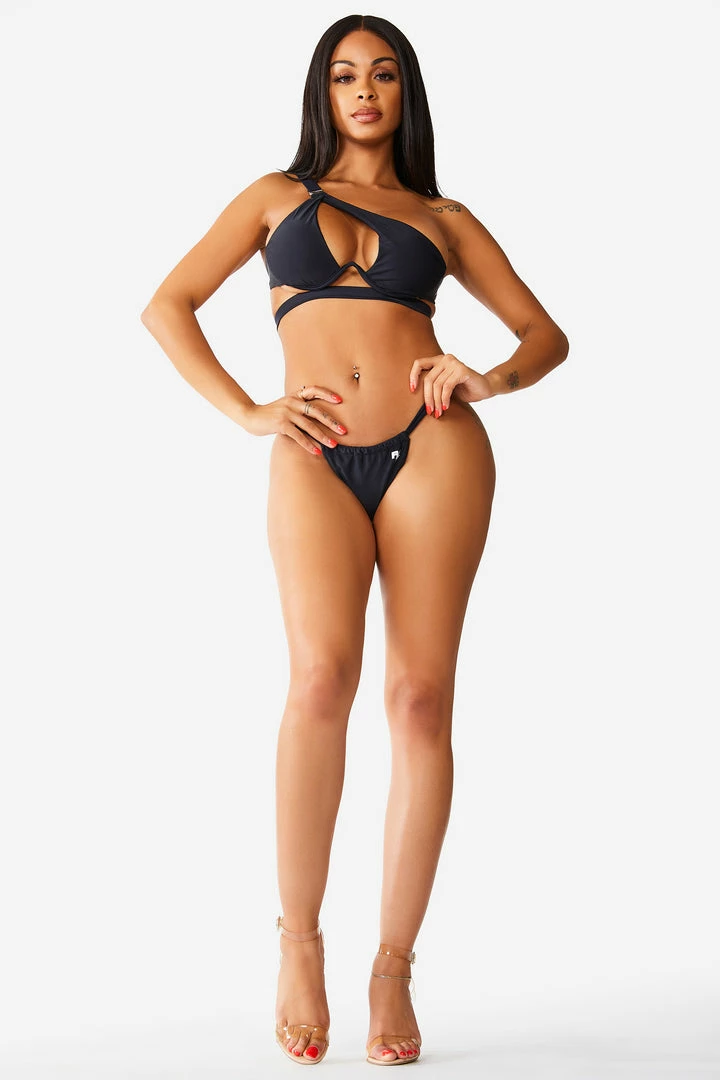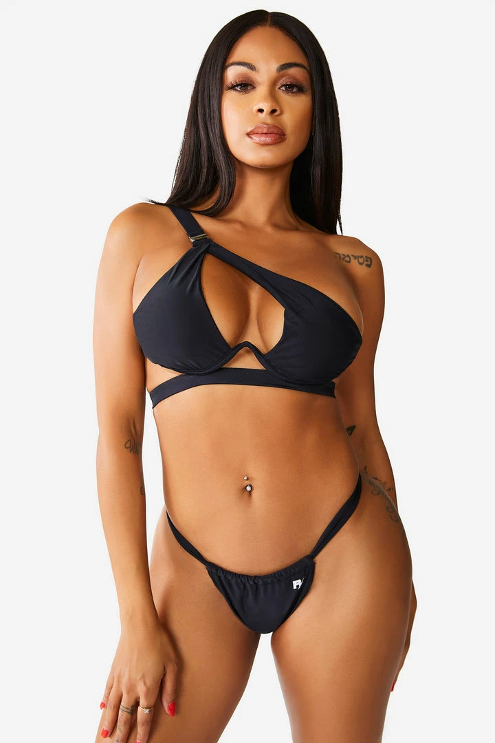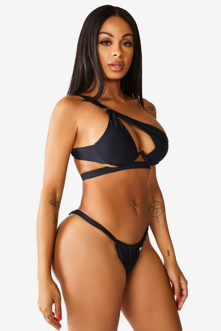 Rockstar Original Women’s two-piece bikini set with underwire detail on the top and off the shoulder silhouette with double back strap detail and cheeky bikini.