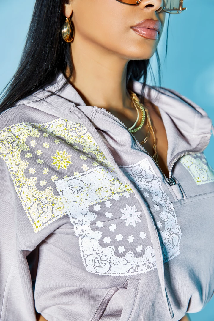 Rockstar Original Women’s two-piece short set inย mocha. Featuring printed RSO logos with paisley patches throughout the top and bottom. Top accents a mini length with ribbed cuffs, an elastic hem and drawstring hoodie while bottoms accent an elastic waistband and side pockets. Style with your favorite sneakers for a sporty Rockstar babe OOTD!