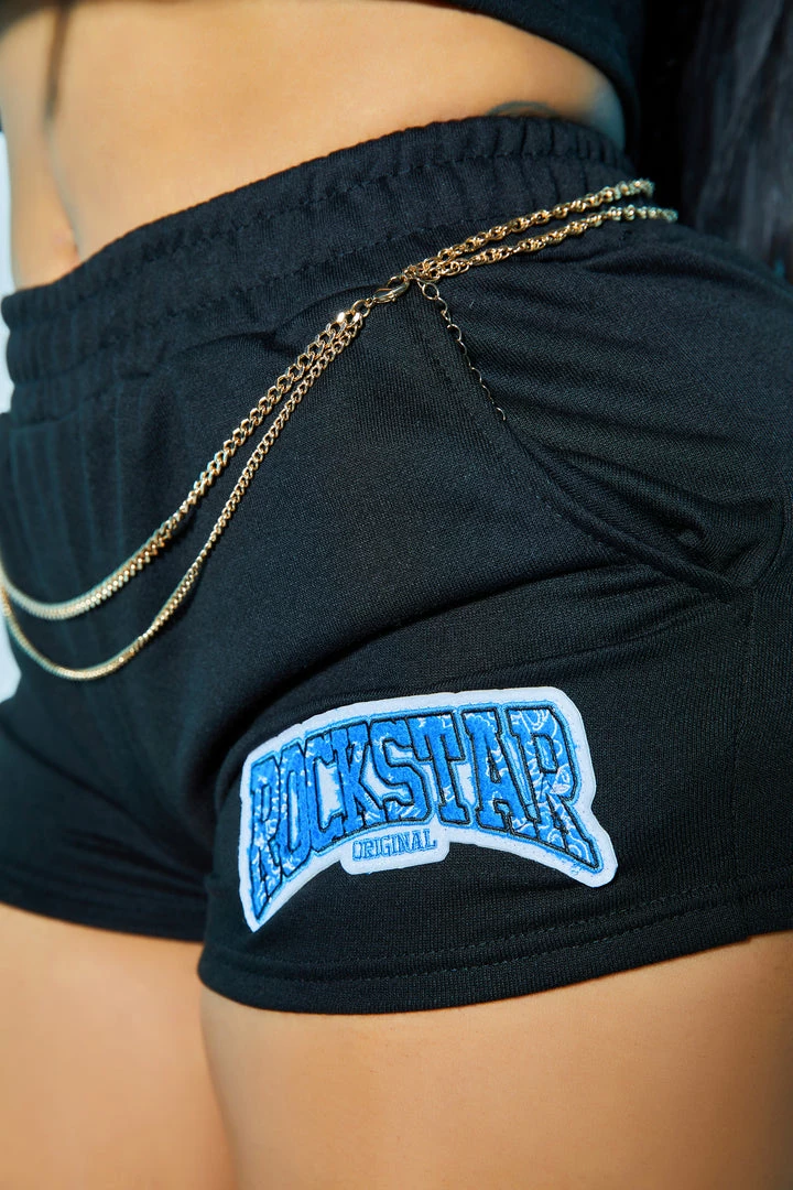 Rockstar Original Women’s two-piece short set inย black. Featuringย printedย RSO logos on the top and bottoms. Top accents a mini length withย short sleeves and a drawstringย hood while bottoms accent an elastic waistband and side pockets. Style with your favorite sneakers for a sporty Rockstar babe OOTD!