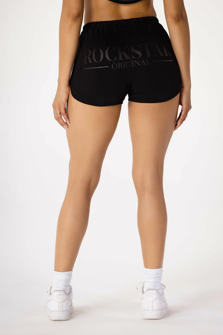 Rockstar Original Women’s essential shorts in black. Featuring printed RSO logos throughout the front and back. Accenting an elastic ribbed waistband, side pockets and ultra soft cotton.
