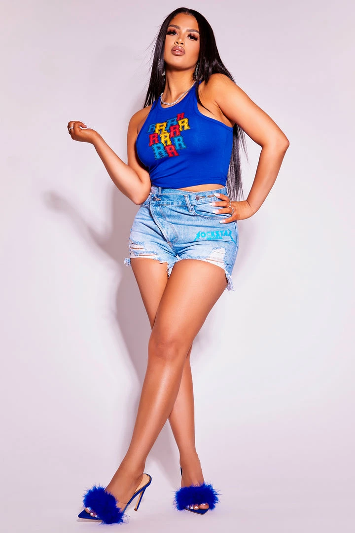 Rockstar Original Women’s denim shorts in light wash. Featuring a printed RSO logo with a crossover waistband, multiple pockets throughout and distressed, frayed hems. Style with a bandeau top or oversized tee for the perfect OOTD!