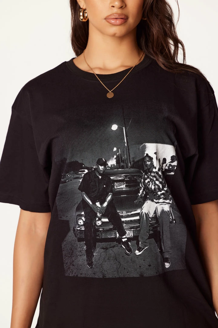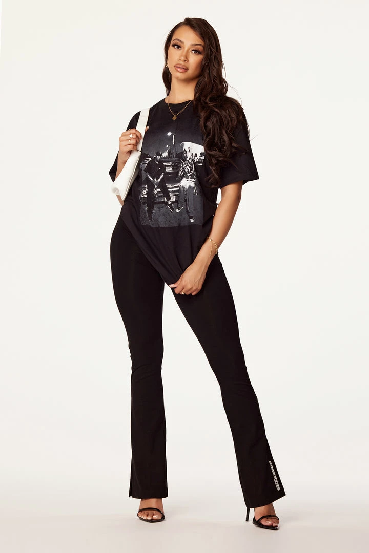 Rockstar Original Women’s tee in black. Featuring aΒ Dr Dre and Snoop Dogg Impala portrait.Β Accenting a crew neckline with a relaxed, oversized fit. Style with biker shorts for a sporty Rockstar babe look!