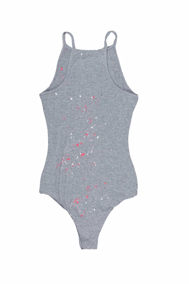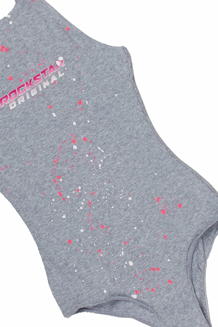 Rockstar Original Women’s one-piece cami bodysuit in grey. Featuring a printed RSO logo across the bust in ombre pink. Accenting a halter neckline, ribbed stretch material and a button clasp closure. Style with your favorite denim and heels for the ultimate Rockstar babe OOTD.