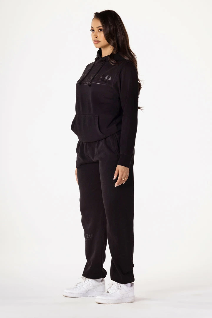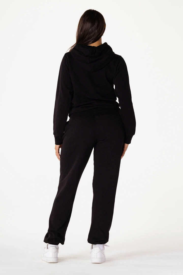 Rockstar Original Women’s two-piece essential sweat pant set in black. Featuring a clean RSO logo on the top and bottom. Top accents a drawstring hood and ribbed cuffs and hemline while bottoms accent a drawstring waistband, side pockets and ribbed cuffs. Designed with luxurious cotton for a super soft internal finish.