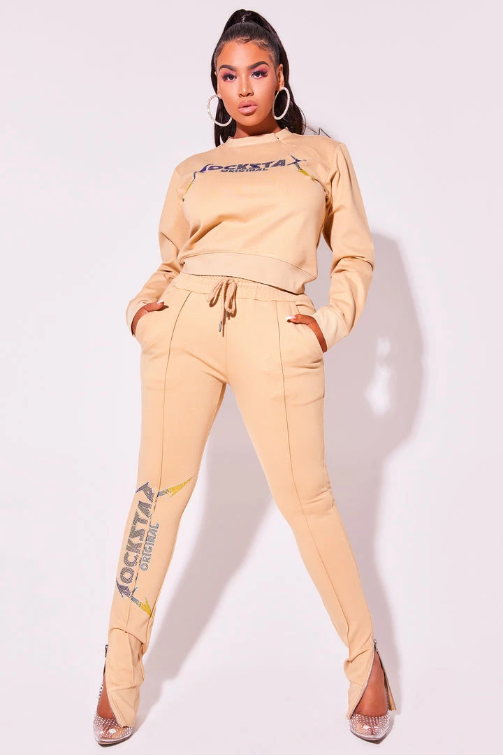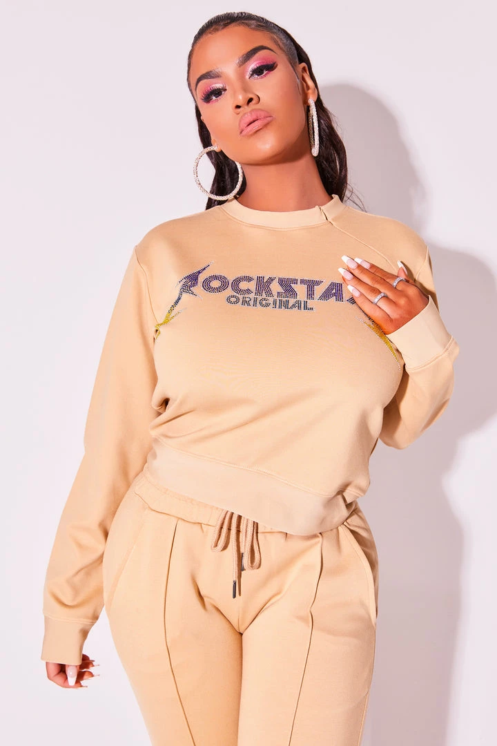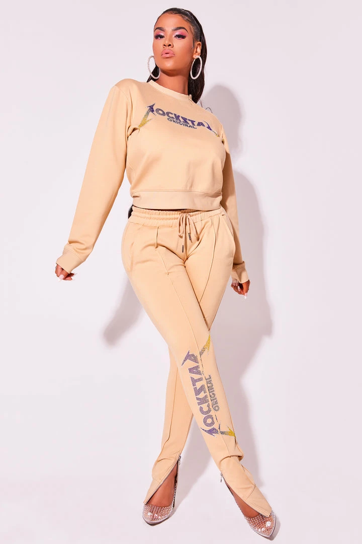 Rockstar Original Women’s sexy, sultry and super comfy crop pullover with matching jogger tracksuit set. Accenting RSO rhinestone logos throughout, this set will keep you ready for the day! Made for the Rockstar babes who love a good comfort and glam combo!