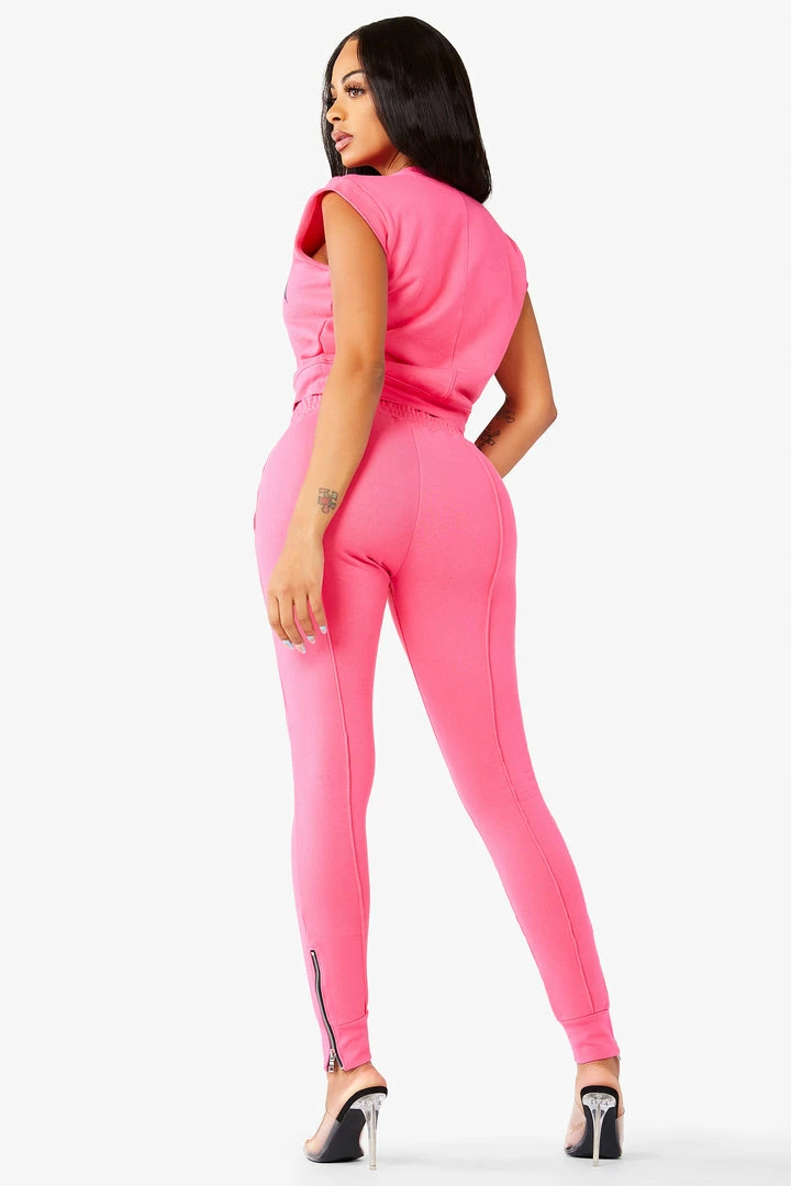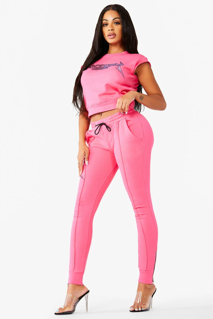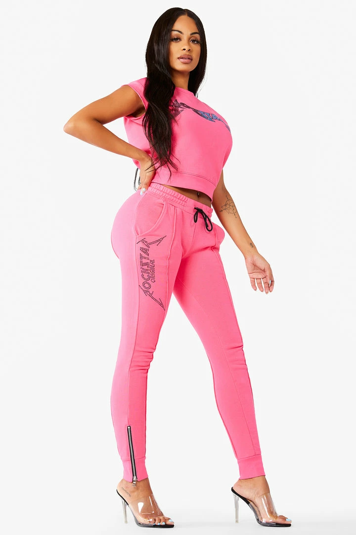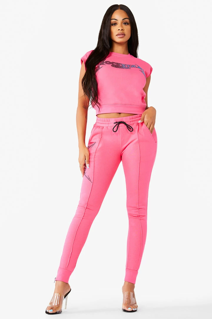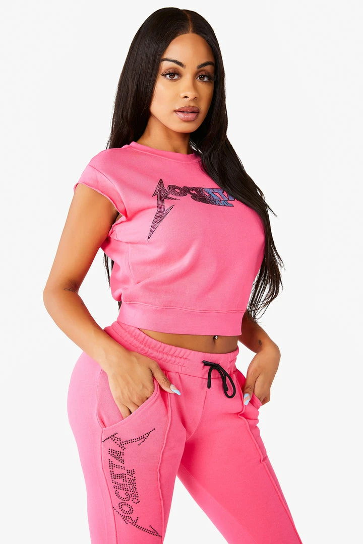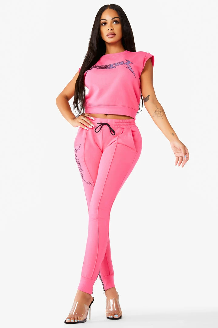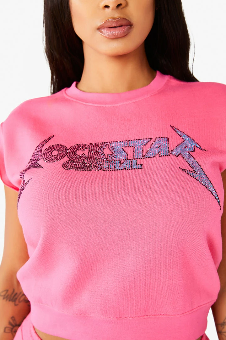 Rockstar Original Women’s short-sleeved tracksuit set with piped details and crystal Rockstar Original logos.